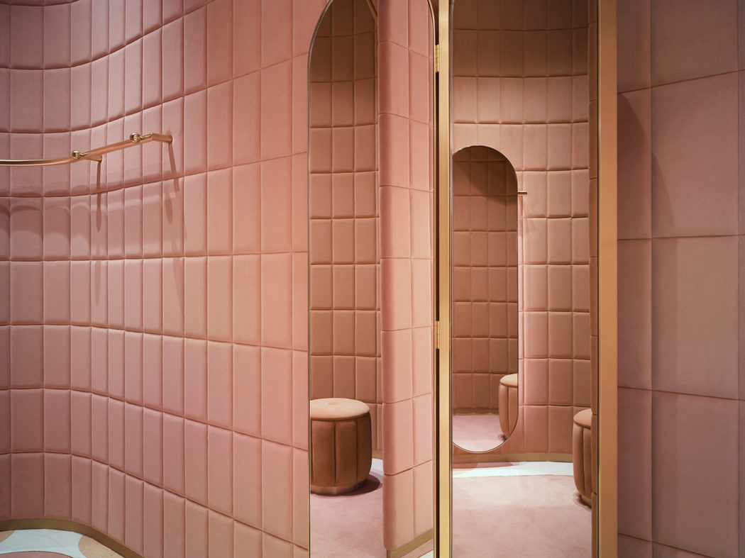 Red Valentino has opened a bubblegum-coloured flagship store on London’s Sloane Street, designed by India Mahdavi.