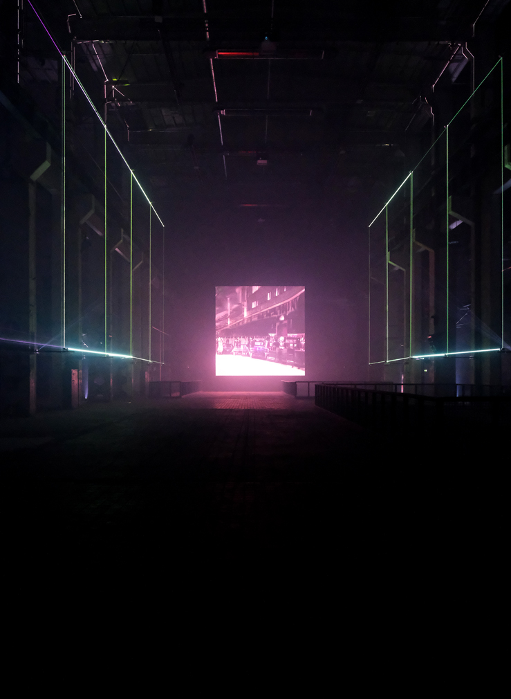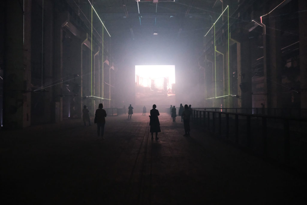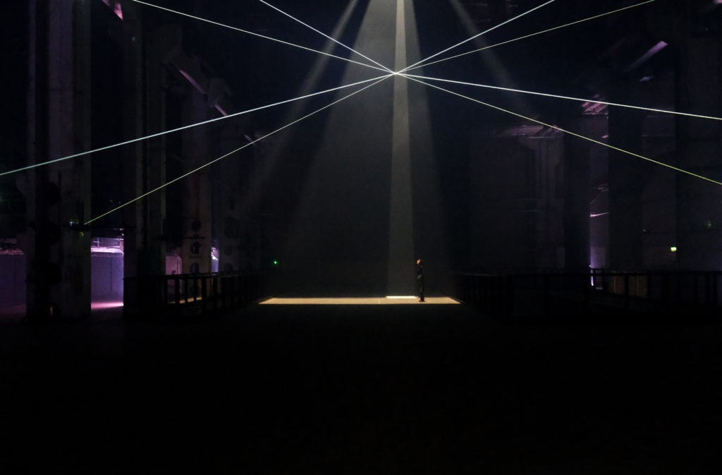 Machine-learning algorithms function as the ‘brain’ of the artwork, using LED lights and lasers to create luminescent sculptures that activate Kraftwerk’s industrial interiors. Its vast concrete walls also act as a giant canvas for a morphing AI-generated ‘painting’ made up of thousands of photographic images. Sensors use real-time data, collected from visitors interacting with the artwork, to create ever-changing patterns and projections inside the architectural space.
