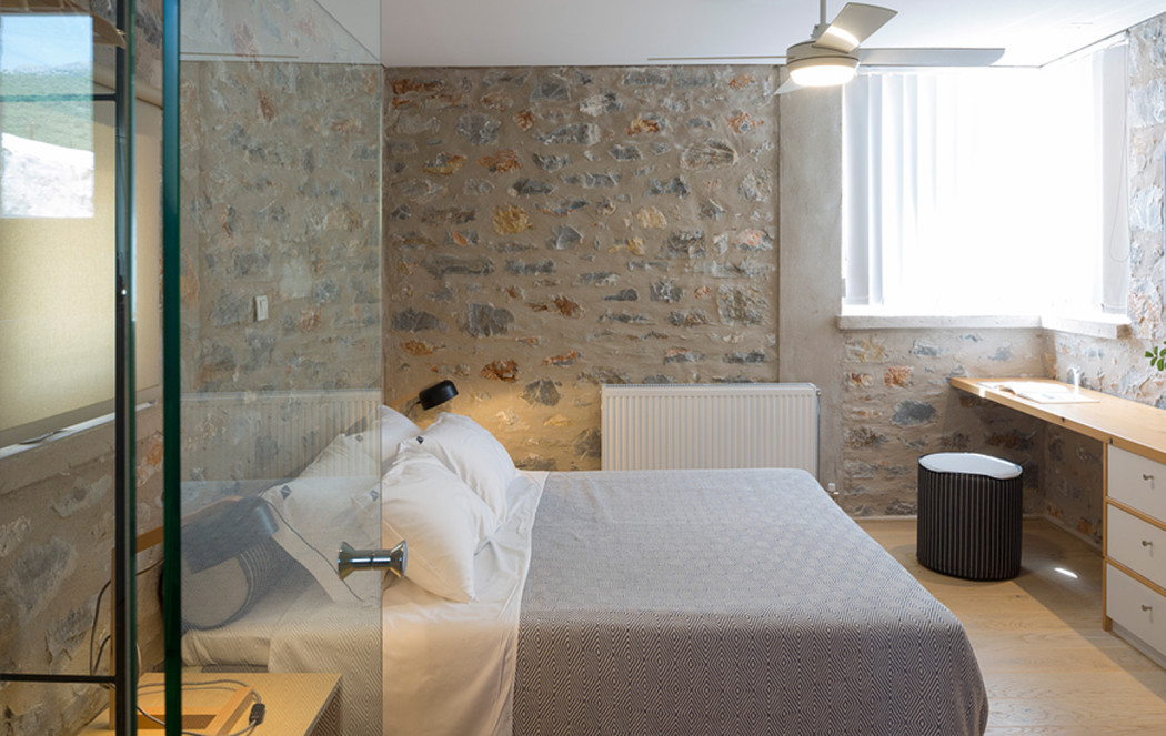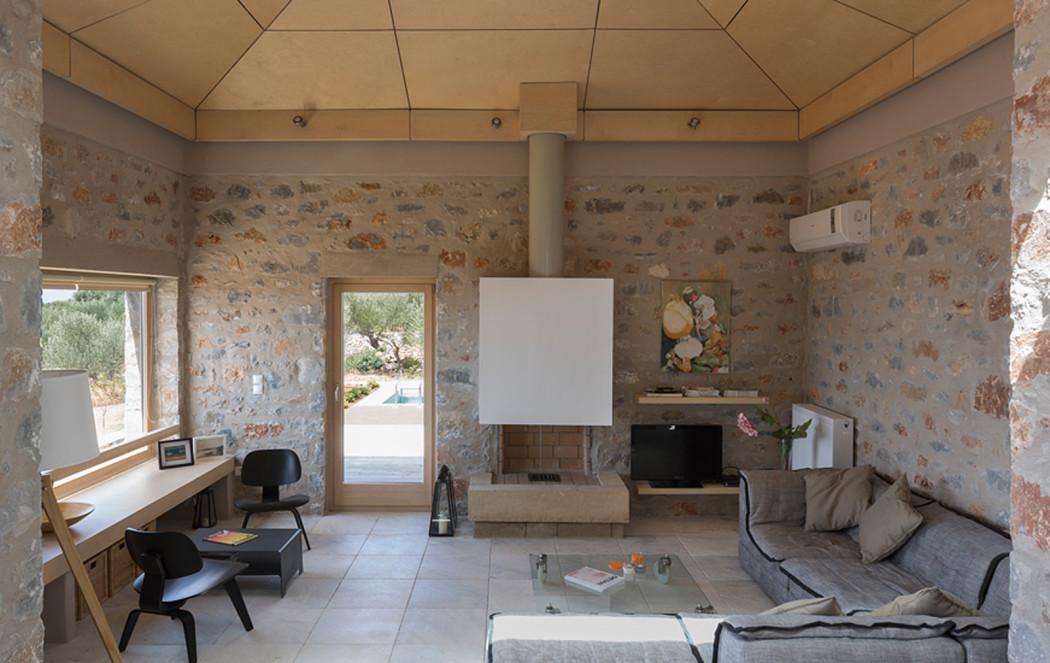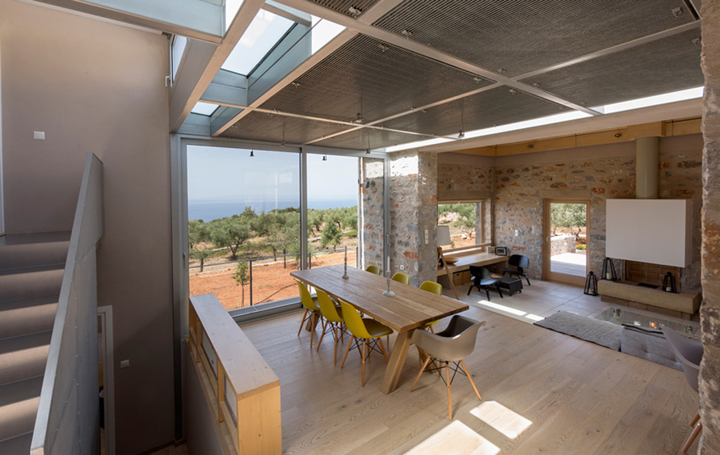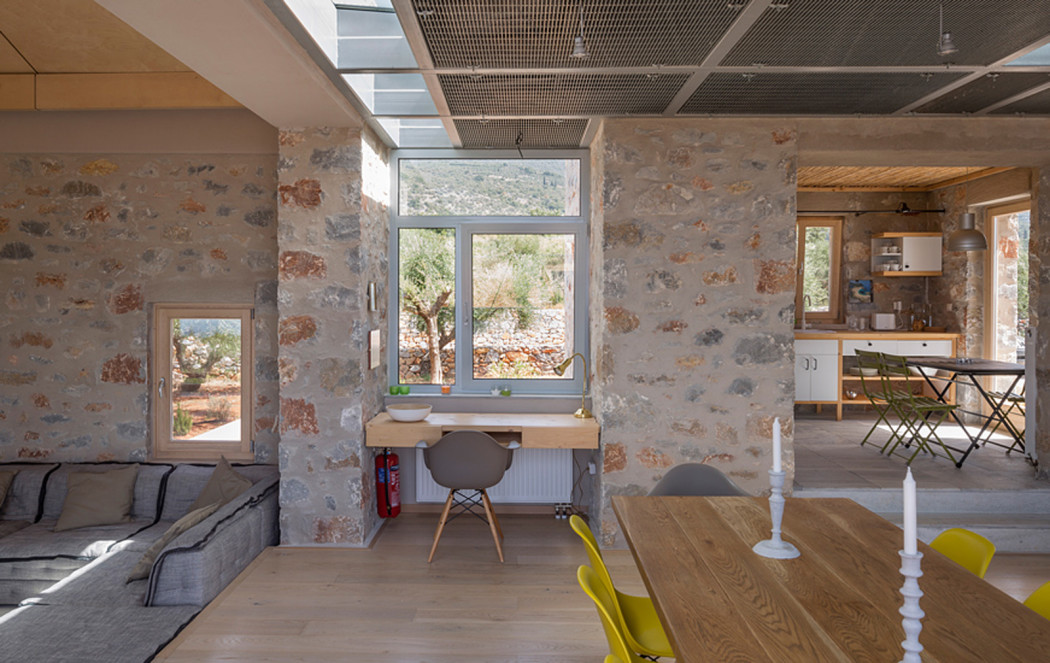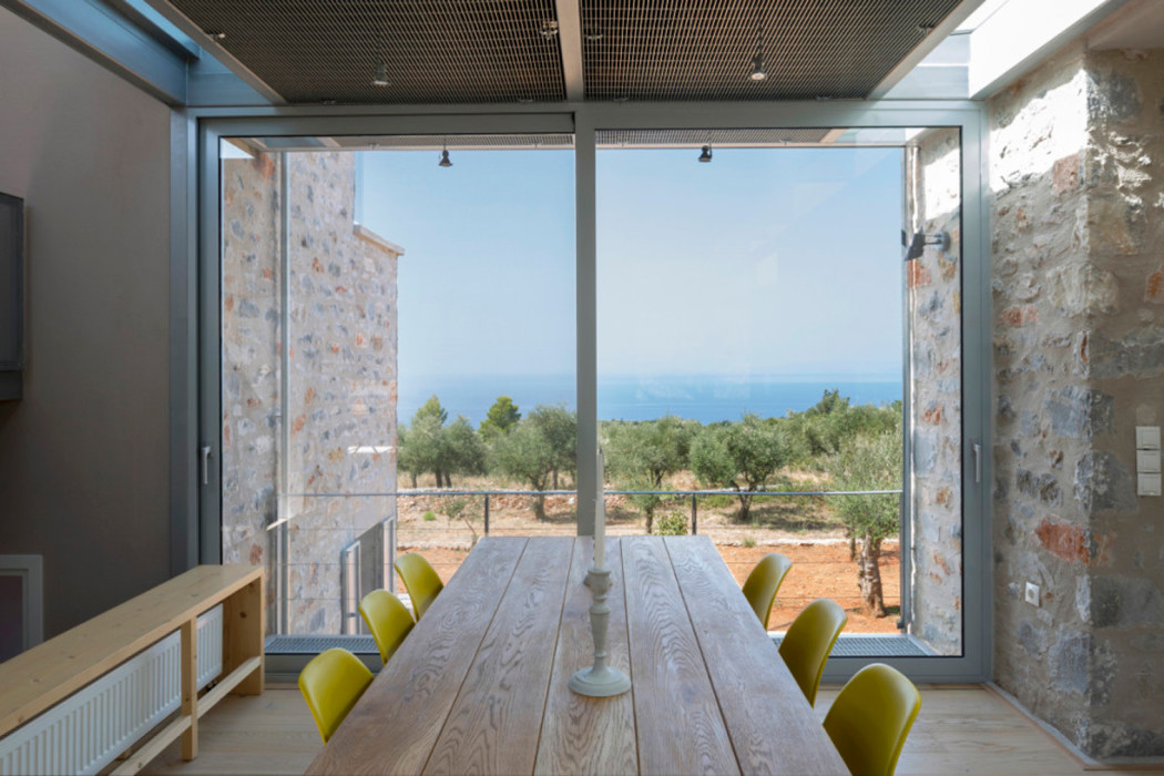 The Greek practice took cues from the traditional architecture of the surround region, known for its ancient towers. Three volumes, built from local stone, are connected via contemporary glass and steel links.