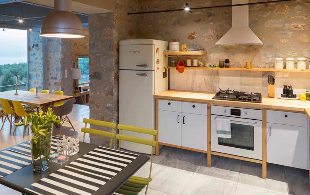 The third volume is dedicated to the heart of Greek family life, with a family kitchen and dining room opening onto each other.