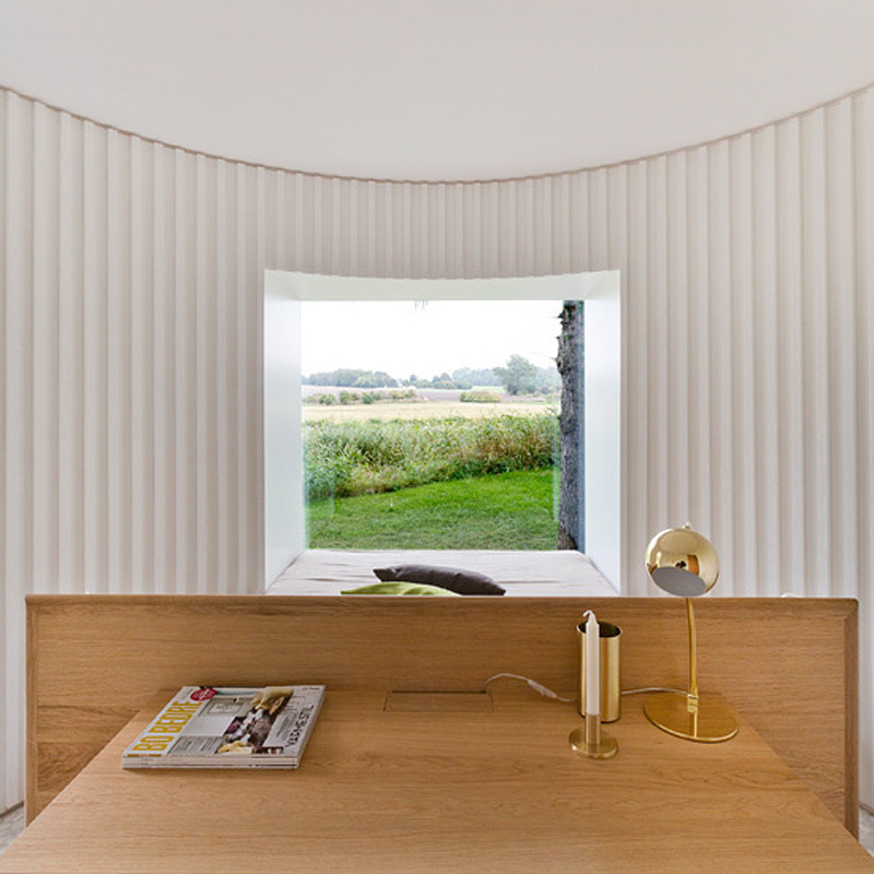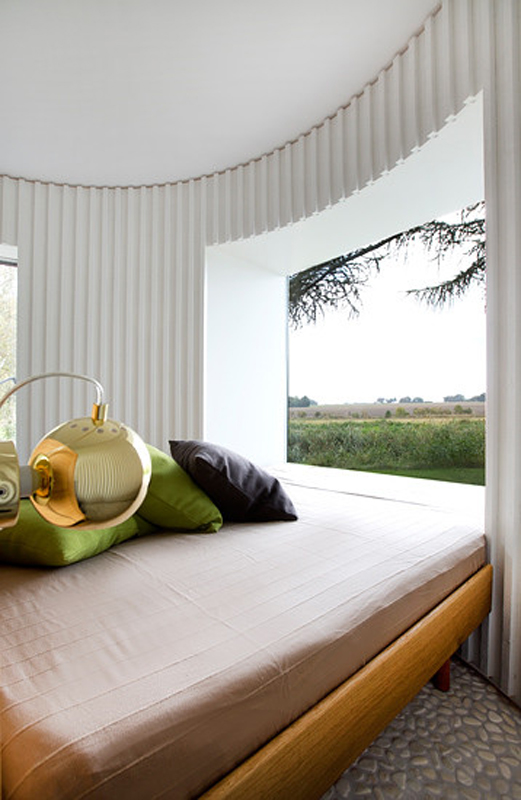 Called Birkedal, the three-bedroom house spreads across a grassy plot like a series of hopping stones. Living spaces are divided across nine connected cylindrical volumes, which create bubble-like rooms within the modern holiday villa.