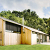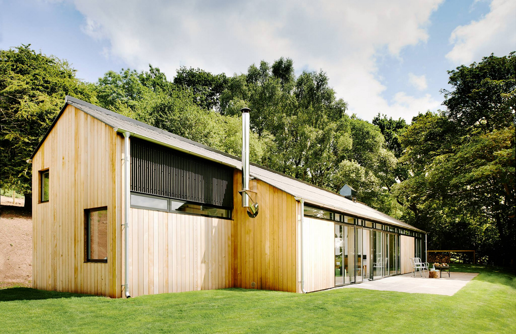 Architects Hall+Bednarczyk took cues from the farm building’s original palette when turning it into a four-bedroom home. They replaced the original cladding with red cedar, while fitting a new corrugated roof in a nod to the building’s pastoral roots.