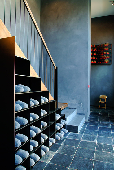‘All the paintings, objects and installations have a connection to the old school, but in a humorous way,’ its owner Anne Laloux told HomeDSGN.
