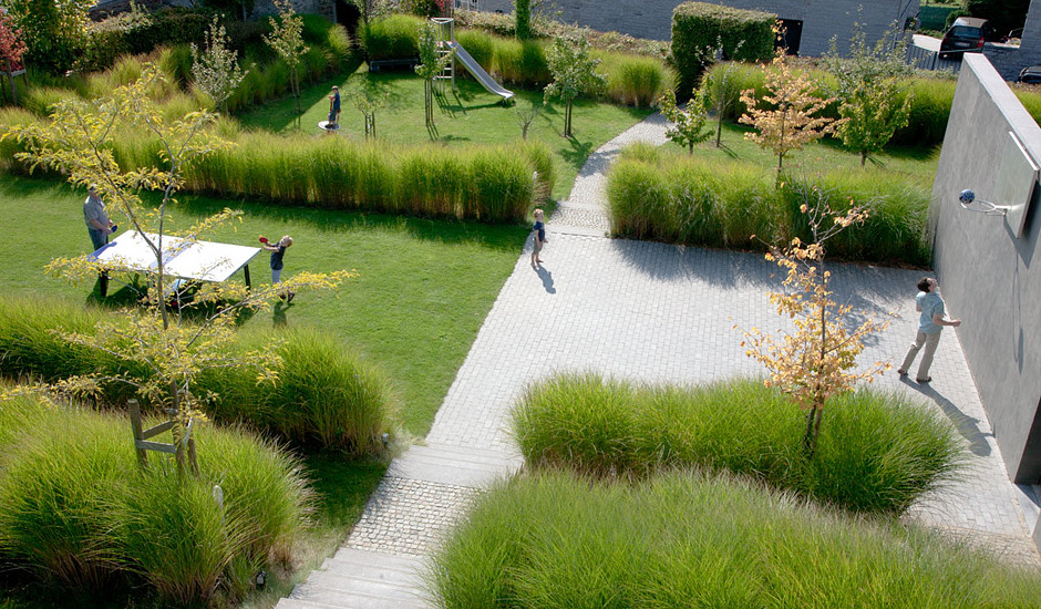 Outside, sculpted gardens encircle a tennis and basketball court.