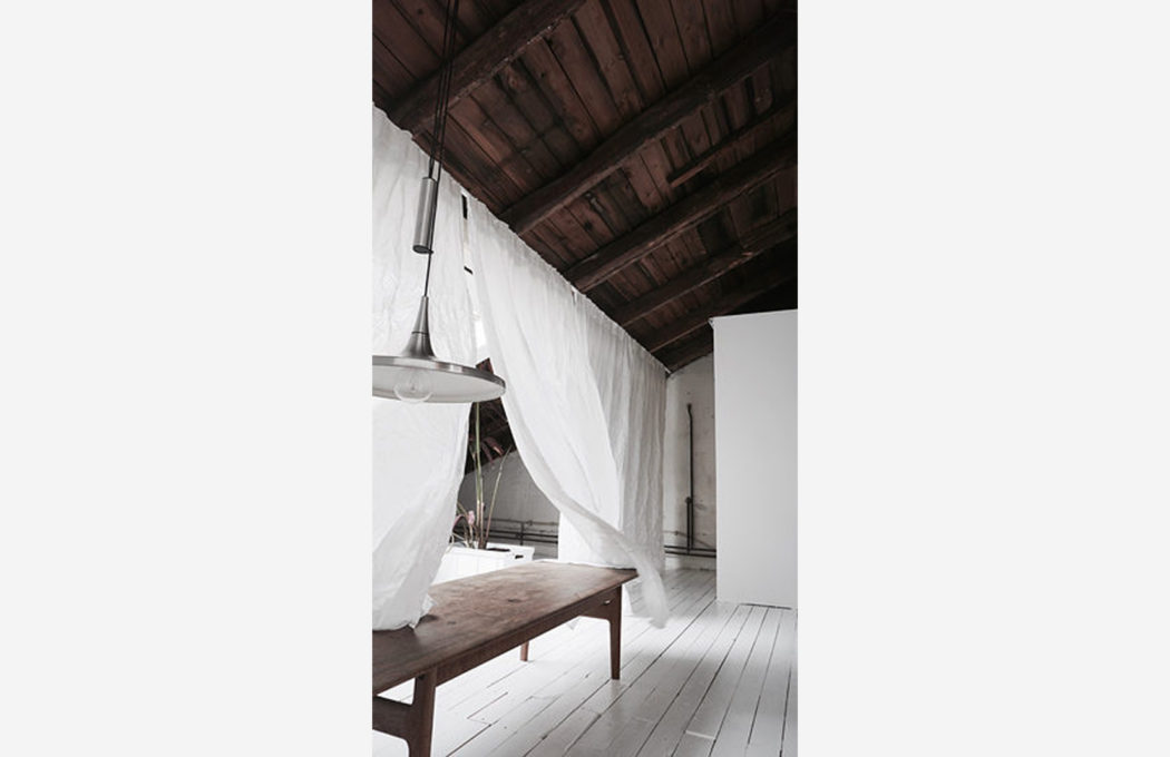 Interiors take inspiration from the building’s industrial past: white polished floors are teamed with pale walls and flashes of exposed concrete, while tall ceilings amplify the feeling of space.
