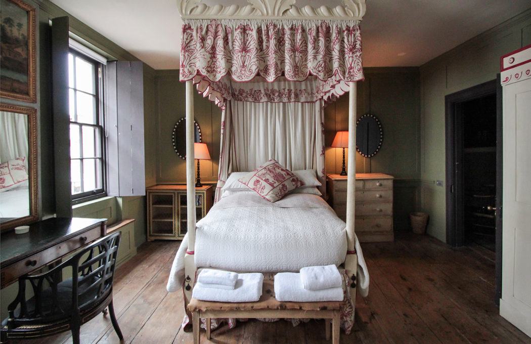 Drawing on her antiques expertise, Atkins has kitted the property out with a mix of period furniture – such as a four-poster king-size bed in the panelled master bedroom – alongside contemporary design pieces by the likes of Philippe Starck.