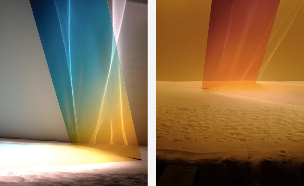 The designer enlisted London-based art collective Troika to design the set of her catwalk show yesterday inside The Old Selfridges Hotel. It featured a salt-covered walkway and large photographic foils that cast rainbows of light onto the audience.