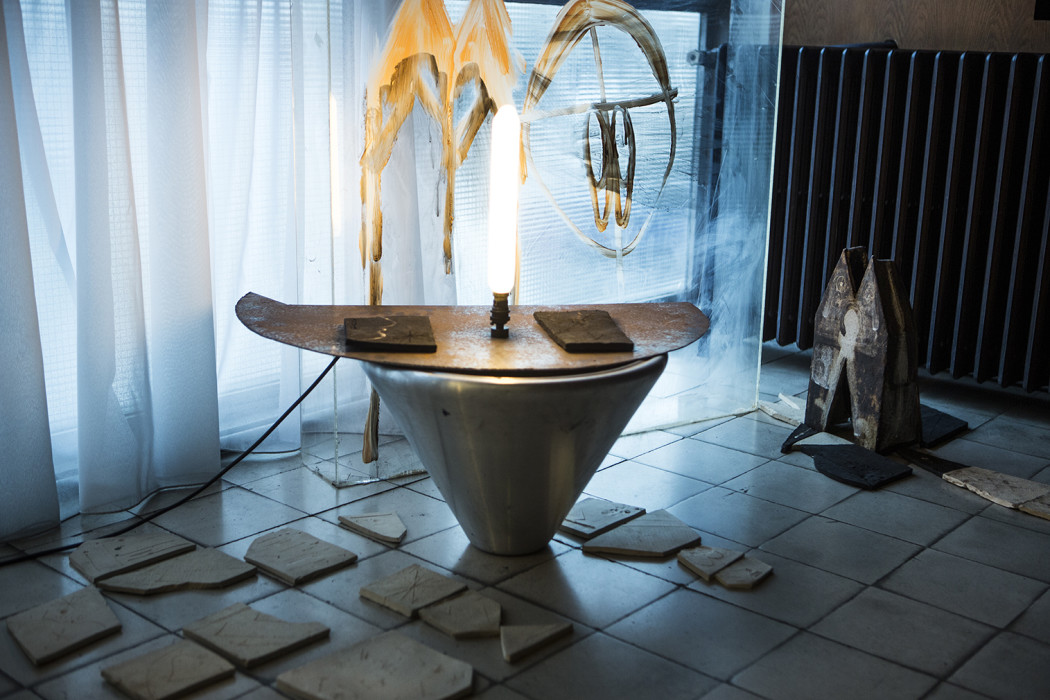 The self-dubbed ‘temporary artist’ describes her sculptural intervention as a ‘three-way collaboration’ between herself, her grandfather and the Swiss-French architect.