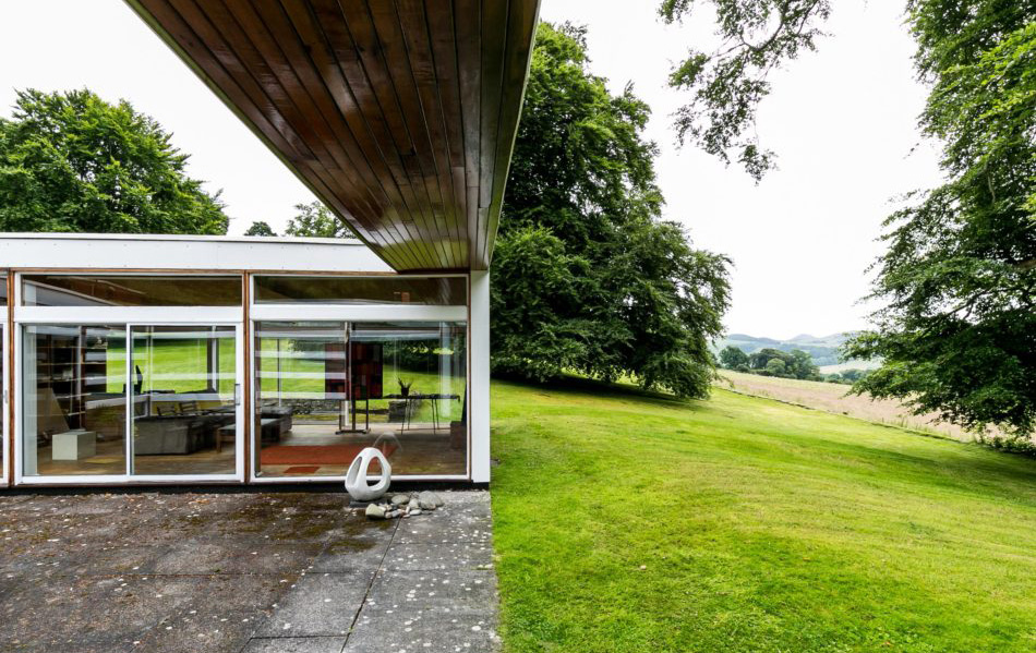 The single-storey Selkirk dwelling was commissioned by textile designer Bernat Klein as his private residence and built in 1957. It sits atop a grassy knoll surrounded by trees some 35 miles south of Edinburgh, where the Serbian-born designer built his reputation supplying fashion houses such as Christian Dior and Yves Saint Laurent.