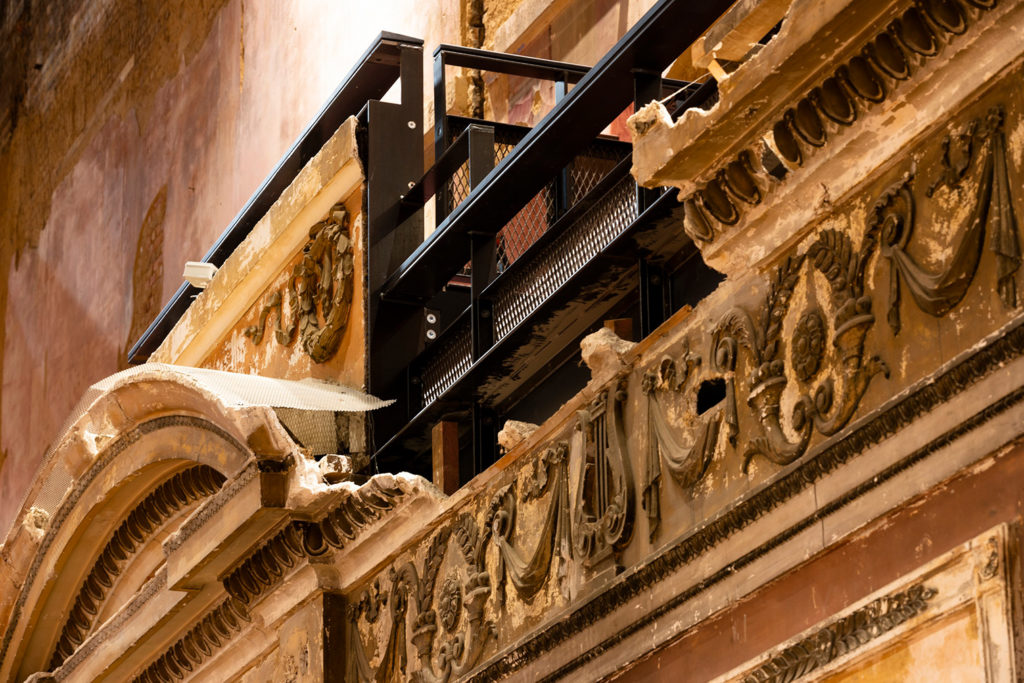 The practice has shored up the structure but left its patinaed skin on show – a testament to the theatre’s riches-to-rags history.
