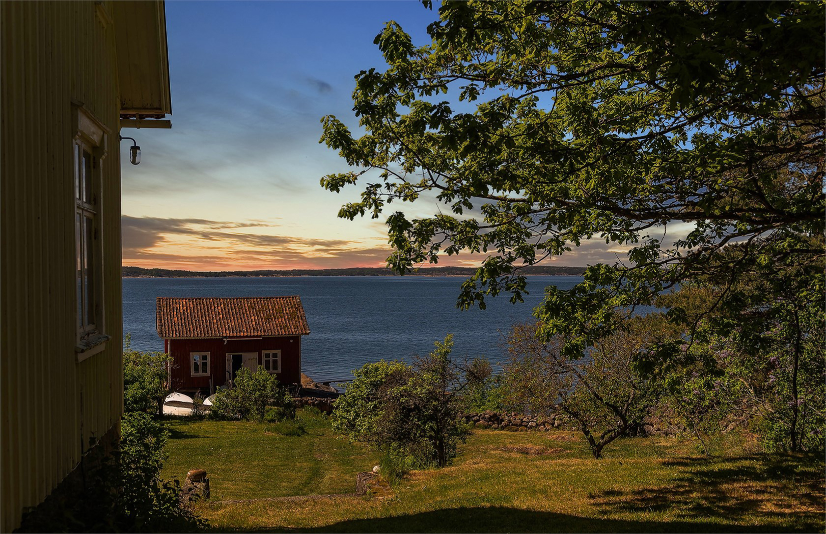 In the far west Swedish coastland of Strömstad’s Lunneviken, this 1930s holiday house rests on a granite outcrop that meets the edge of a sheltered inlet. The property has stayed within the same family since the 1950s, its shoreline setting shaped by a private bathing rock, a boathouse and an orchard that has grown into a mature garden over decades. The retreat feels secluded yet firmly rooted in western Sweden, where rocky islands, pine forest and shifting tidal light set the tone of daily life.