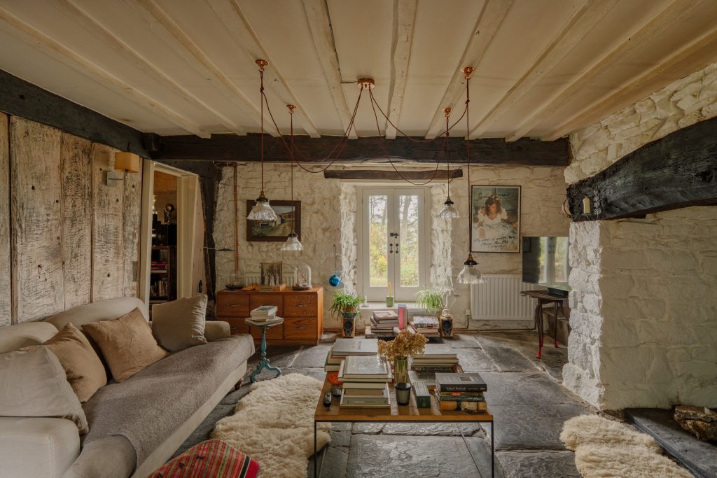 Set on the slopes of Carngafallt in Powys — an RSPB reserve and Site of Special Scientific Interest — ‘Bwlch Coch’ is a cruck-framed Welsh longhouse that traces its origins back more than 700 years. The four-bedroom farmhouse has been carefully restored over two decades, its stone walls, oak beams and limewashed surfaces supporting a dialogue between heritage and modern craft. The home feels deeply rooted in its landscape yet quietly contemporary in spirit.