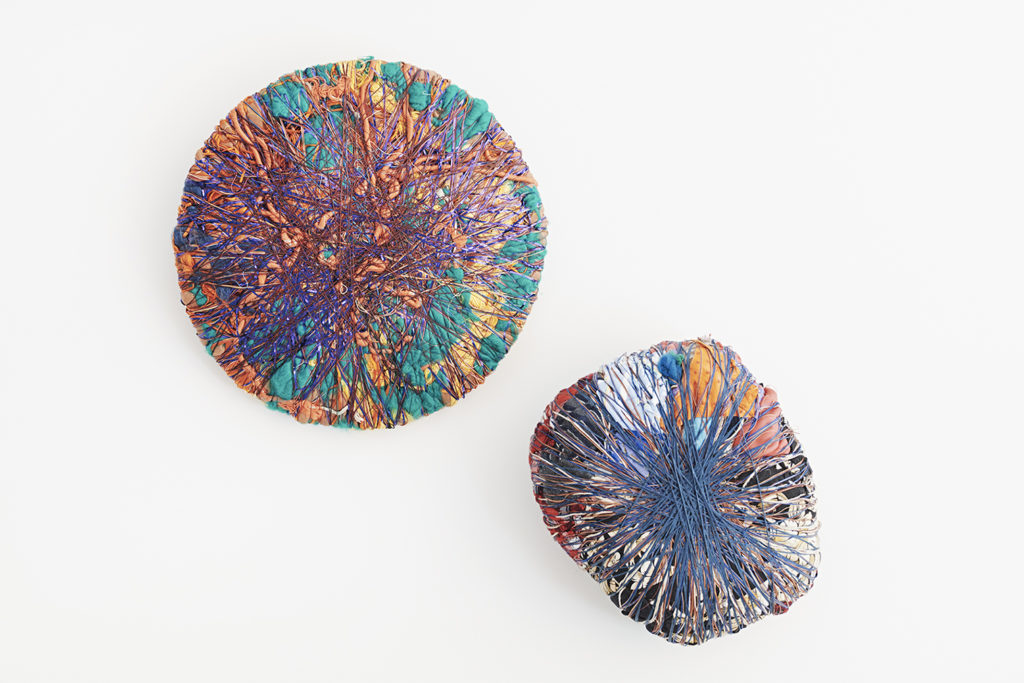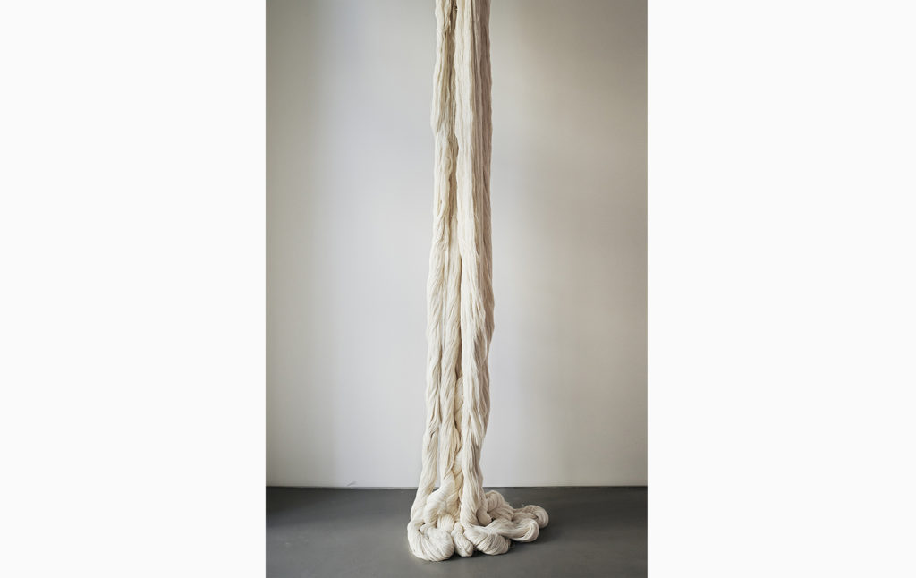 Elsewhere, a tactile column made from wrapped cords hangs from the Tel Aviv gallery’s double-height ceiling down to the floor, gently moving with the breeze.