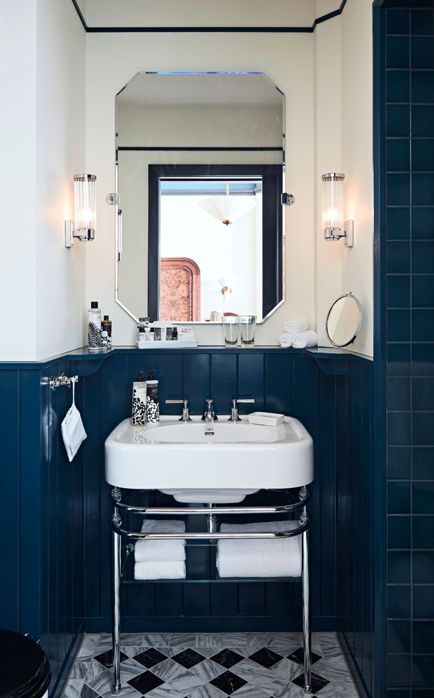 Bedrooms – which range from ‘tiny’ to ‘extra large’ – are set across three floors. ‘Monumental rooms’ fill the first floor and branch off the building’s restored limestone corridor with art deco lighting and mosaic-tiled floors.