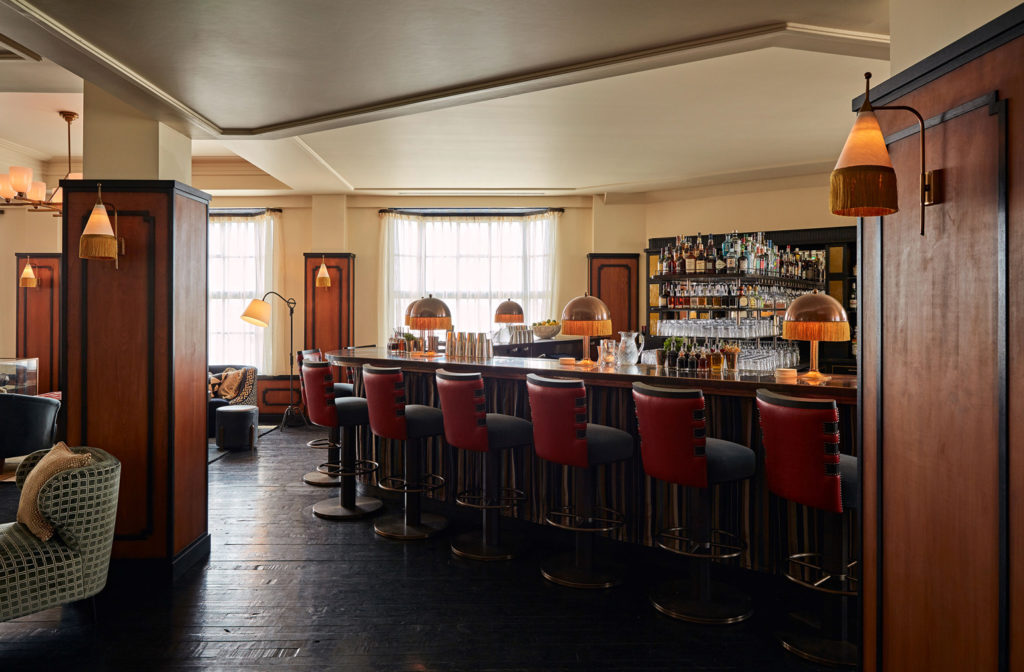 The main member’s space is ensconced on the building’s fifth floor, overlooking the canal. Here wall panelling is inspired by detailings found across the Bungehuis. Original blue tiling has been offset by bold fabrics and a mix of antique furniture, as well as bespoke pieces from Soho House. Adjacent to the lounge is the library, which includes its own bar and workspace area.