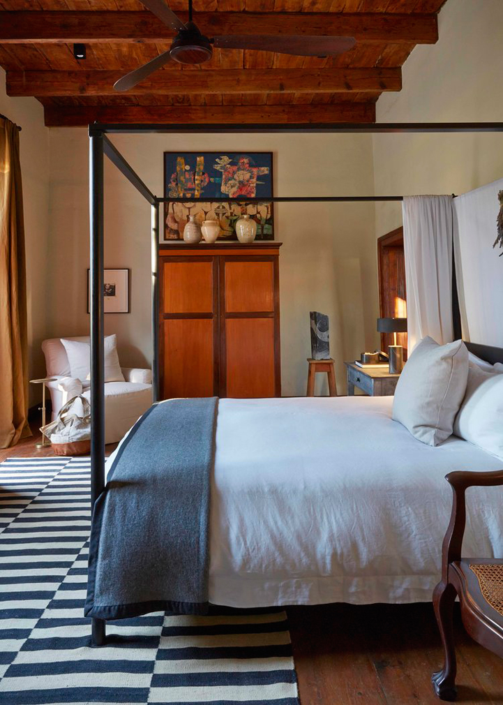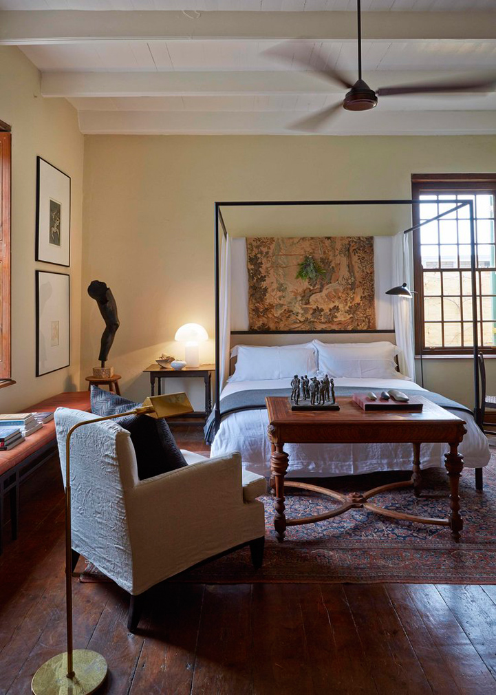 The 1854 structure needed a lot of work to bring it up to livable, and presentable, standards, but the house’s bones made for generous elegantly proportioned rooms. Erasmus’ pared-back approach – layered but not cluttered – contributes a sense of restraint that feels almost Axel Vervoordt-esque in its careful placement of objects and eclectic mix of art and artefacts.