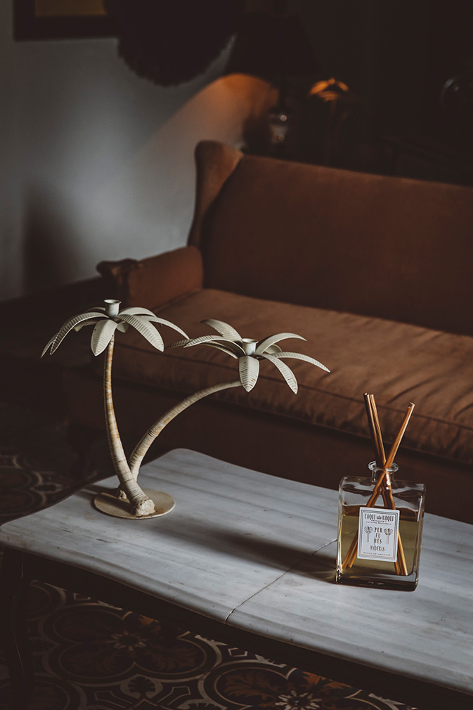 Mesón de Malleville sits across from the Convent of San Bernardino de Siena. High ceilings and oversized windows feature across the perfumers’ property, which features exposed historic beams and Moorish floor tiles.