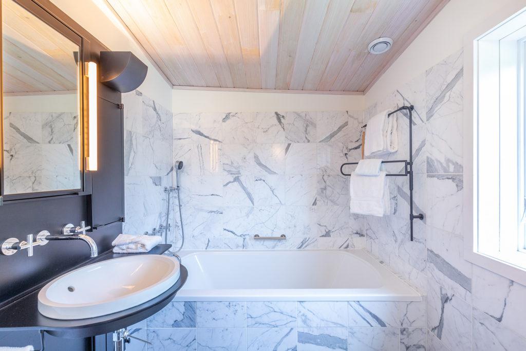 Y House is on the market for $1.6 million via Select Sotheby’s International Realty and is equally sculptural inside. A staircase flows up through the space, connecting with the mezzanine rooms while directing the gaze upwards to the asymmetrical ceiling.