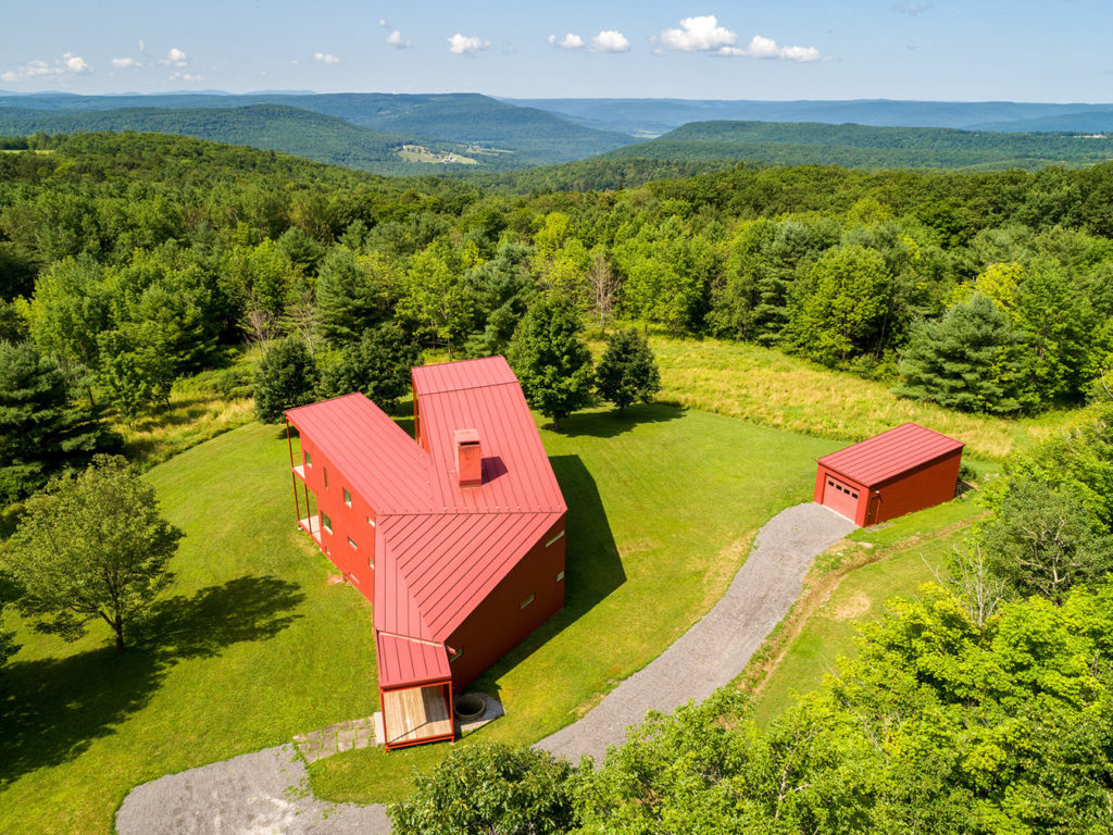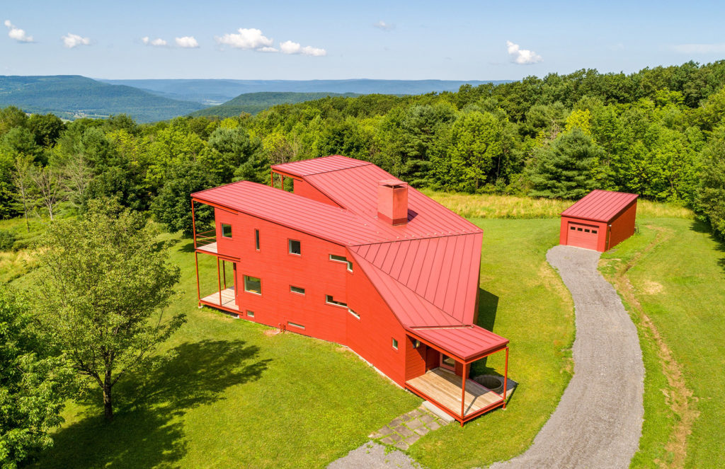Set on a hilltop in New York’s Catskill Mountains lies an iron-oxide red house built in the shape of the letter Y.