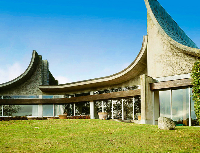 Now on the market via Architecture for Sale for $1.21m, the five-bedroom home was completed in 1965 for artist Andree Bordeaux Le Pecq in a rural valley and features a curvy roof and sloping surfaces.