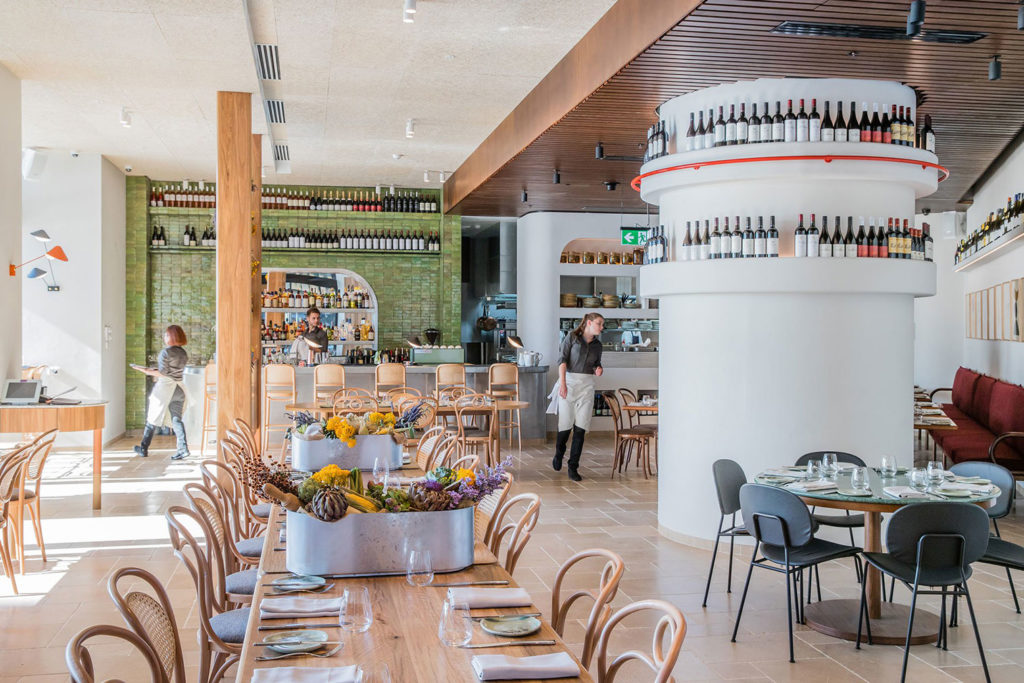 The Australian interiors practice has reinterpreted Provençal style inside the Barangaroo dining spot. Furnishings and wooden beams evoke the classic French bistrot, with a contemporary twist.