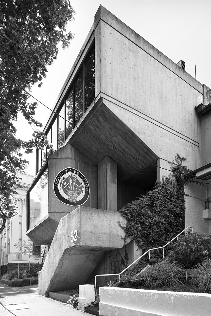 One of the earliest forms of Brutalism in Victoria, this 1969 building draws attention with its futurist front façade: it features two overhanging concrete boxes with glazed walls, which provide views of the street and a striking face for the building.