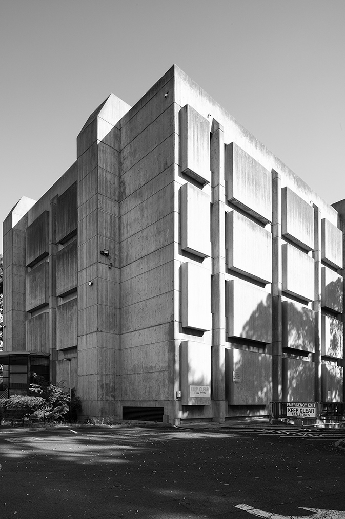 The concrete floors of this 1972 multi-storey car park sweeps upwards to create its walls, appearing like the sides of wide wooden boats. The vertical rows of levels float above one another, with apparently minimal support, belying their colossal weight.