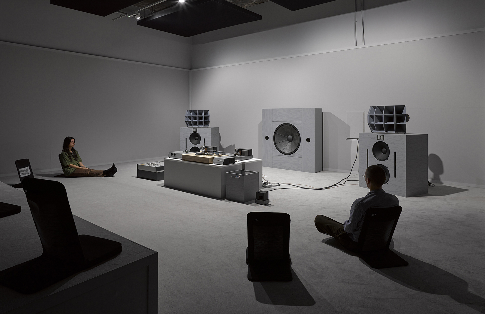 The OJAS listening room at 180 Studios in London isn’t your average after-work hang. An intimate grey-on-grey room softened with carpeting and noise-dampening panels, it seats about 30 people on low, legless loungers. There’s no bar, no mingling. Guests sit facing a wall of horn-loaded speakers and amplifiers installed by the New York audio engineer Devon Turnbull, aka OJAS, which produce rich stereo sound. At the centre sits a pedestal for a turntable and, leaning against it, selections from the vinyl collection of Charlie Dark, a London DJ.