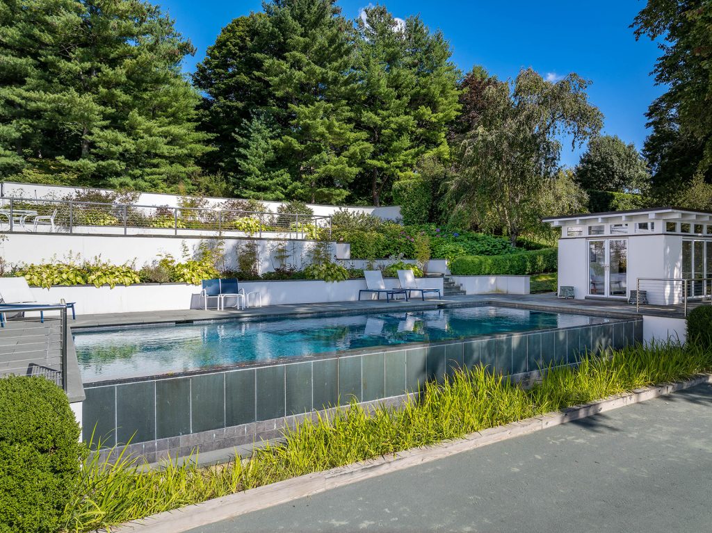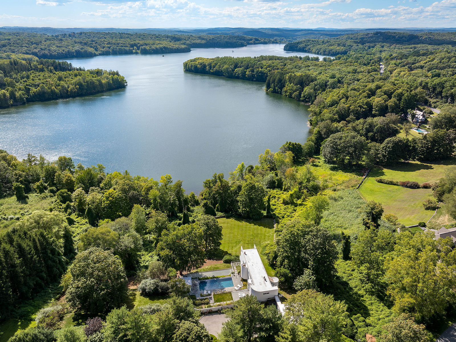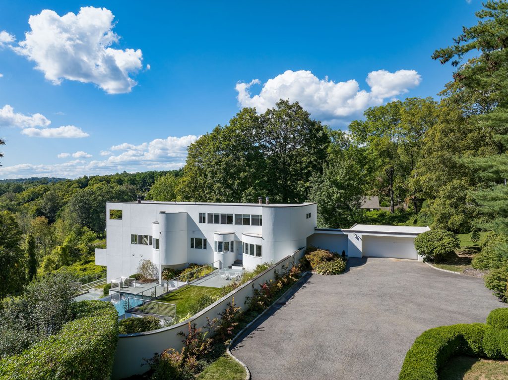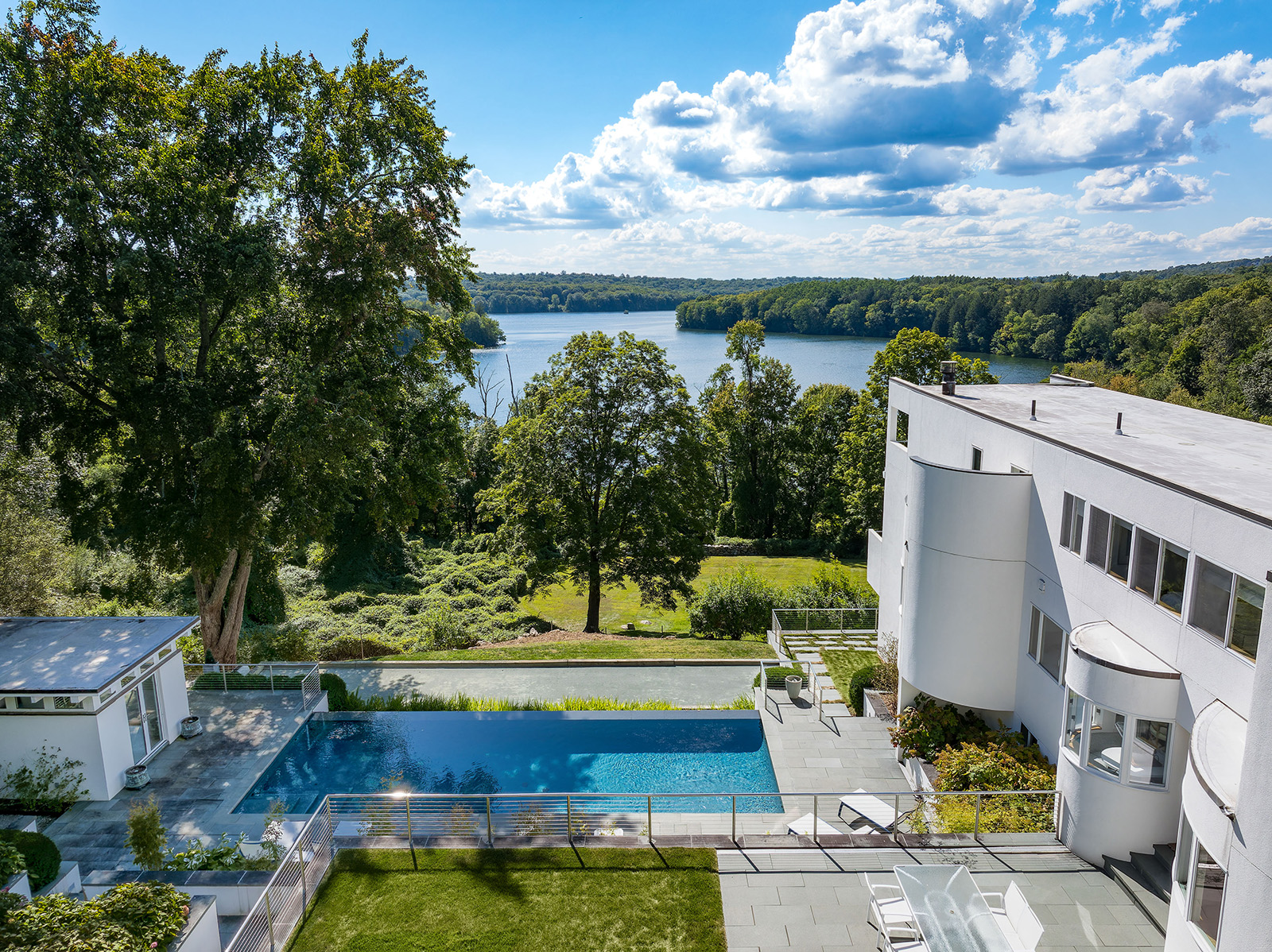 A fixture and figurehead of America’s music scene, Nesuhi Ertegun built up the jazz roster for Atlantic Records, the label he oversaw with his brother Ahmet. And on weekends he’d retreat to this Westchester, NY, villa on four acres overlooking the Cross River Reservoir. Stark white, with Bauhaus elements, the home overlooks forested countryside from terraces, bow windows and long deck the infinity pool. And it’s currently listed with Douglas Elliman for $3.5 million.