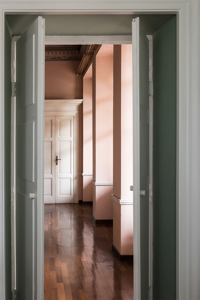 The eight-bedroom Italian property was built in 1864 as the country home of a wealthy industrial family in the village of Camino in Piedmont. The red-brick structure features a boxy mansard roof and unfurls across two main levels.