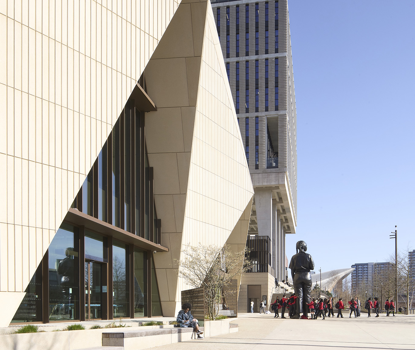 East Bank isn’t a great name for the district that contains the big hitters, but it has presence. And the angular V&A East, which opens this weekend nearly a year after its lauded Storehouse launched across the park, brings added cachet to the landmarks overlooking the Lea River. A satellite of the 19th-century Victoria & Albert museum in South Kensington, which contains treasures as varied as royal tiaras, Canova marbles and Japanese handbags, it was designed over more than 10 years by Irish architects Sheila O’Donnell and John Tuomey, who drew inspiration from a Cristóbal Balenciaga garment in the South Ken collection.