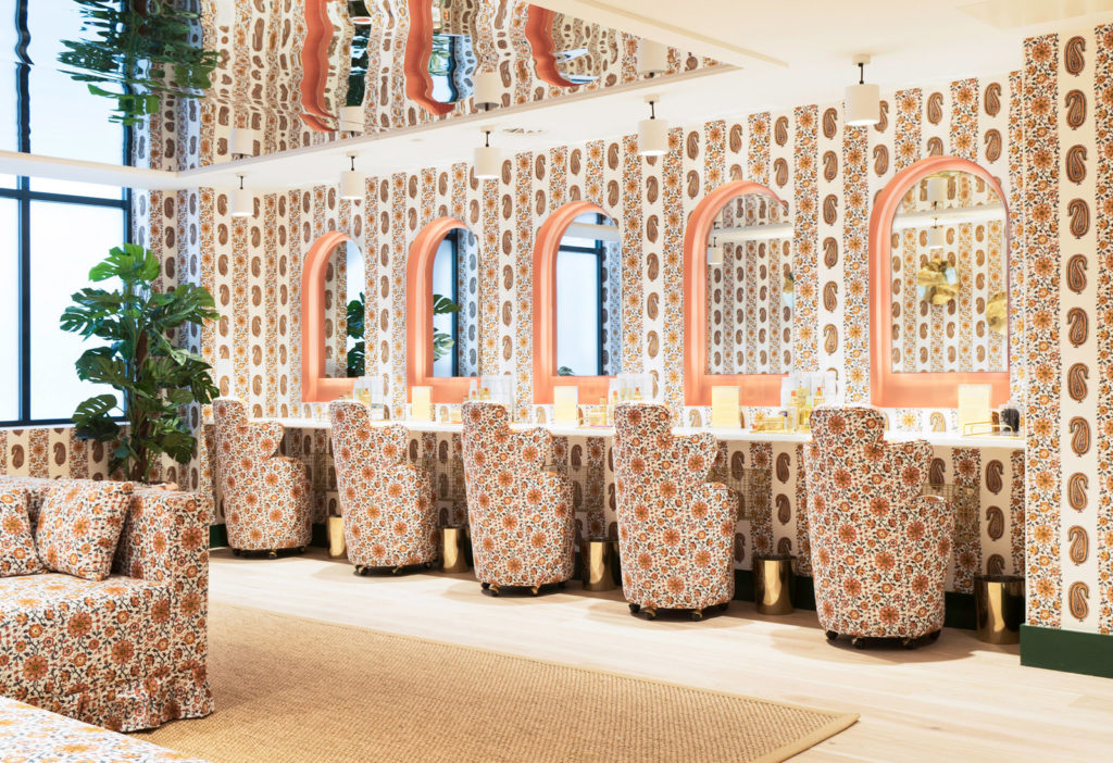 The Wing London takes over a five-storey townhouse a stone’s throw from Oxford Circus Tube Station in Fitzrovia and has interiors by in-house designer Laetitia Gorra. She’s imported some of the brand’s signature staples – namely soft pastel shades – for the London coworking space, reinterpreted alongside chintzy English countryside wallpapers, hexagonal work tables, Portuguese furniture and vintage pieces sourced from Parisian flea markets.