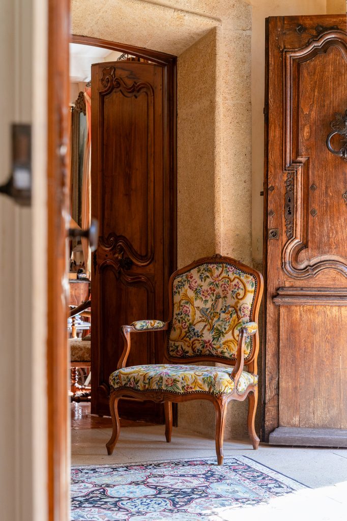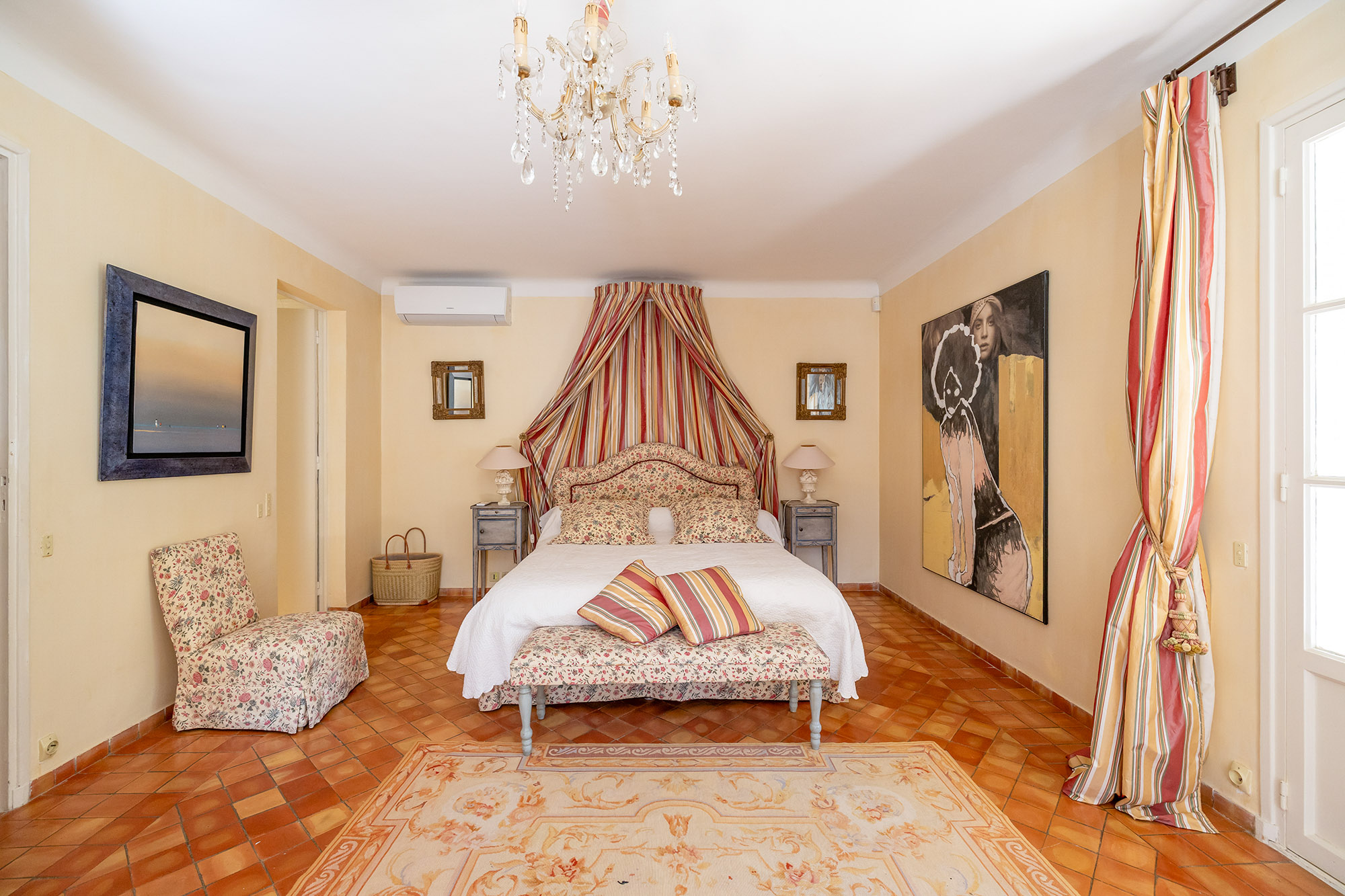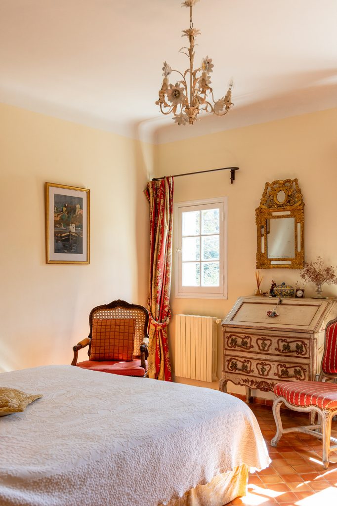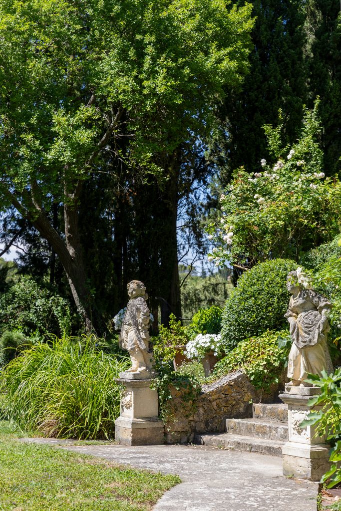 The main bastide extends across approximately 900sqm over three levels. Its plan is arranged with 13 en-suite bedrooms and a series of large reception rooms oriented towards the surrounding grounds, allowing movement between interior and garden throughout the day. A glass-roofed orangery runs parallel to a long rectangular pool, framed by stone columns, statuary and low planting.