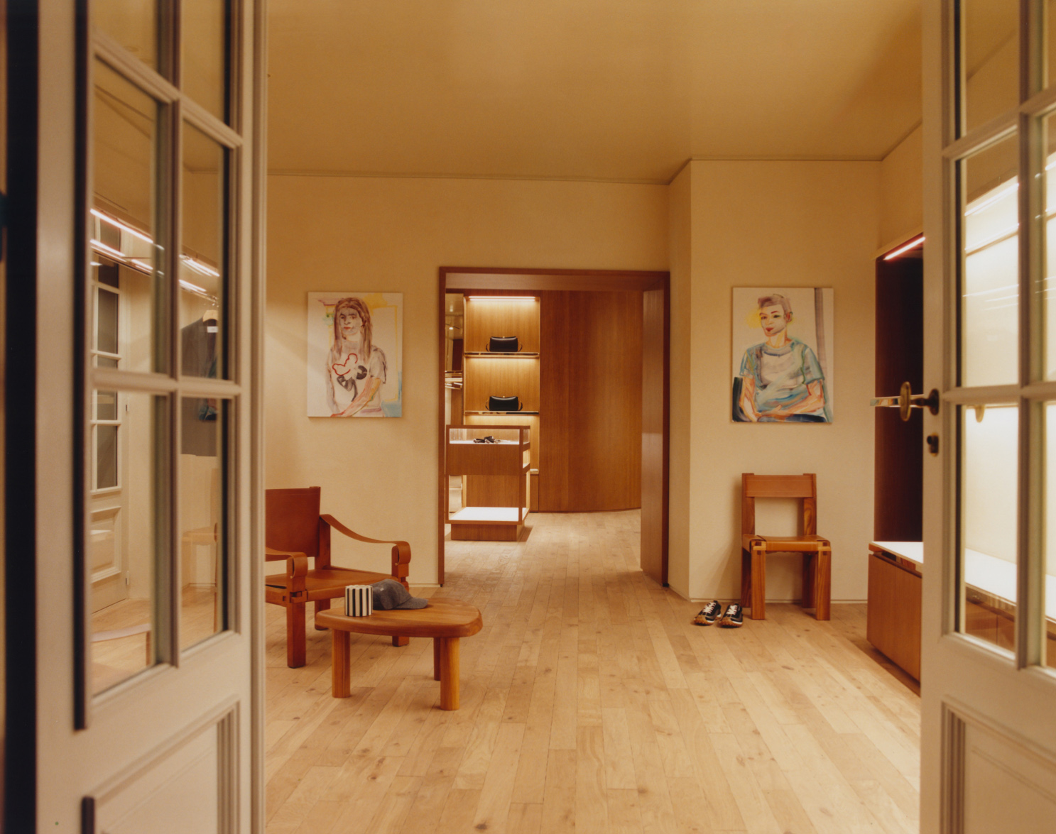 Creamy neutrals and timber joinery set the tone at AMI’s flagship in Brussels’s historic centre. Housed on the ground floor of Hôtel du Chastel de la Howarderie, a late 18th-century neoclassical mansion, it was designed by an in-house design team helmed by creative director Alexandre Mattiussi. The scheme preserves the building’s enfilade of rooms and original fireplaces while adding polished brass details, wooden tables and leather seating for a touch of 21st-century sophistication.