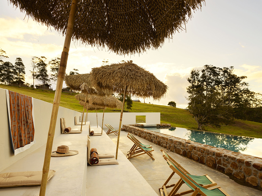 Set on 55 acres of regenerated farmland just 15-minutes from Byron Bay, this slope-side ranch mixes laid-back Aussie hospitality with 1970s-California nostalgia. The experience is indulgent, outback-style, from the Cowboy Bar and basalt-stone pool ‘club’ to ridgeline horse-riding to the fire pit and healing circle. Accommodation is off-grid in barns of timber and recycled brick, with French linen on the inside and alfresco living rooms, BBQs and wild showers on the outside. Pool Suites are more luxurious — decorated in rich colour and ‘sexy as hell’, in the ranch’s own words. The property is home to cattle, horses, fowl and a lemon orchard and embraces sustainable agricultural practices.