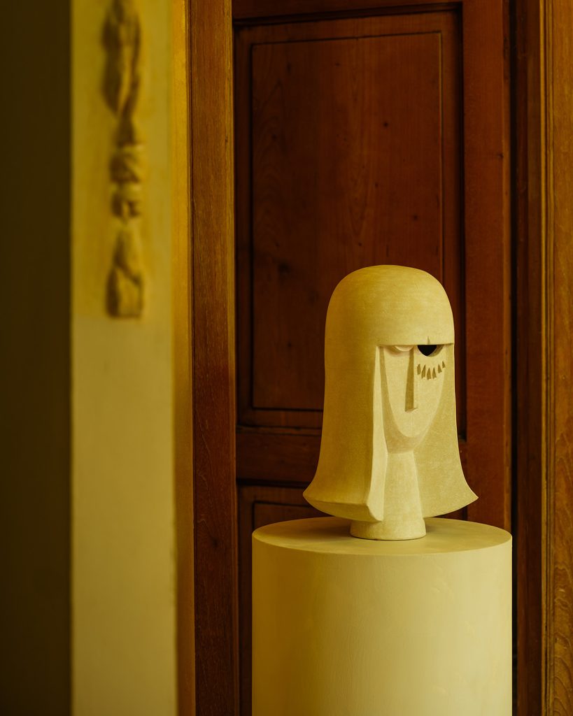 Alhadeff has populated the 2,000-square-foot landmark with designs by the international talents they support — Lindsey Adelman, Faye Toogood, Vikram Goyal and Floris Wubben, to name a few. Yet he’s adapted each piece to its environment, set against rich ochre plaster, lush greenery and stained glass. ‘Our work has always been about creating environments that transcend traditional gallery models, says Alhadeff. ‘Villa Paula’s history and architecture give us the opportunity to create something that is both site-specific and globally resonant.’ The weathered tiled floors and original doors become important figures in the tableaux. And a programme of contemporary brands like Bocci, Boon Editions, Arflex and De La Espada joins the cultural conversation.