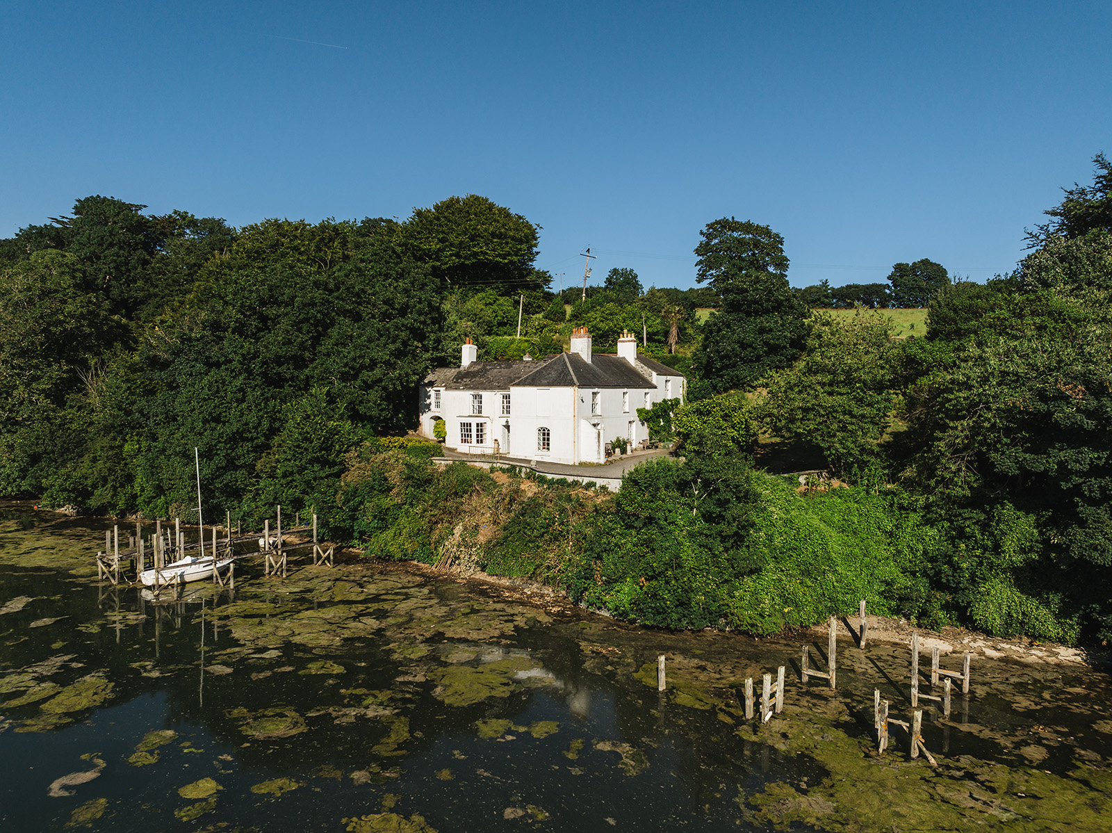 Set on the upper reaches of the Fal Estuary, Lambe Creek House combines historic significance with one of the most atmospheric riverside settings in Cornwall. The Grade II-listed estate stretches across nearly six acres at Old Kea, with direct river frontage, a private beach and jetty.