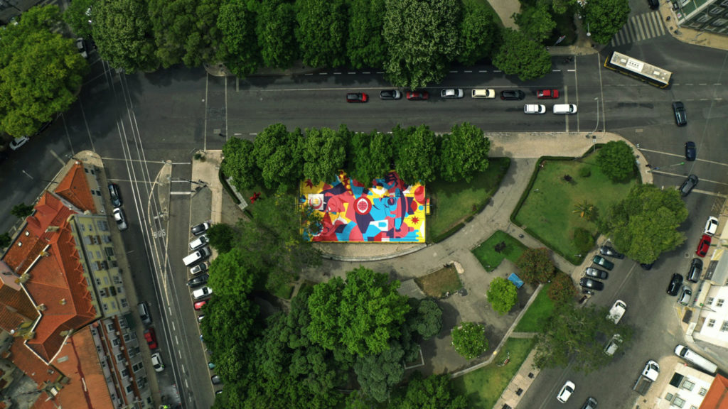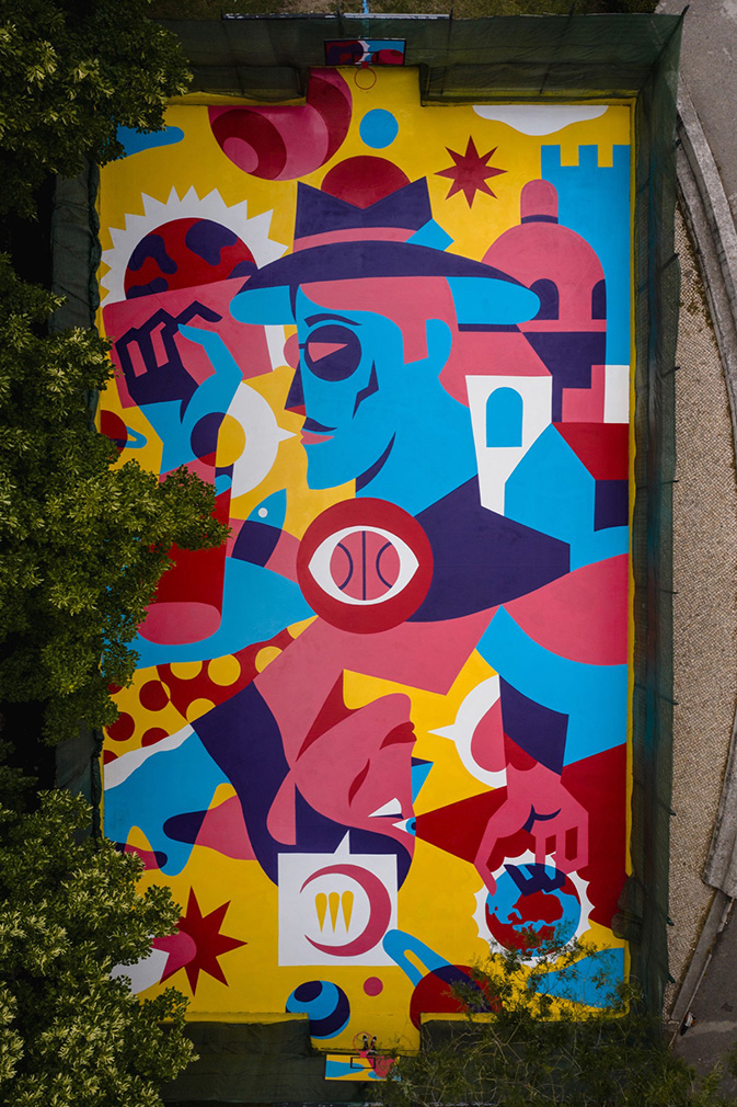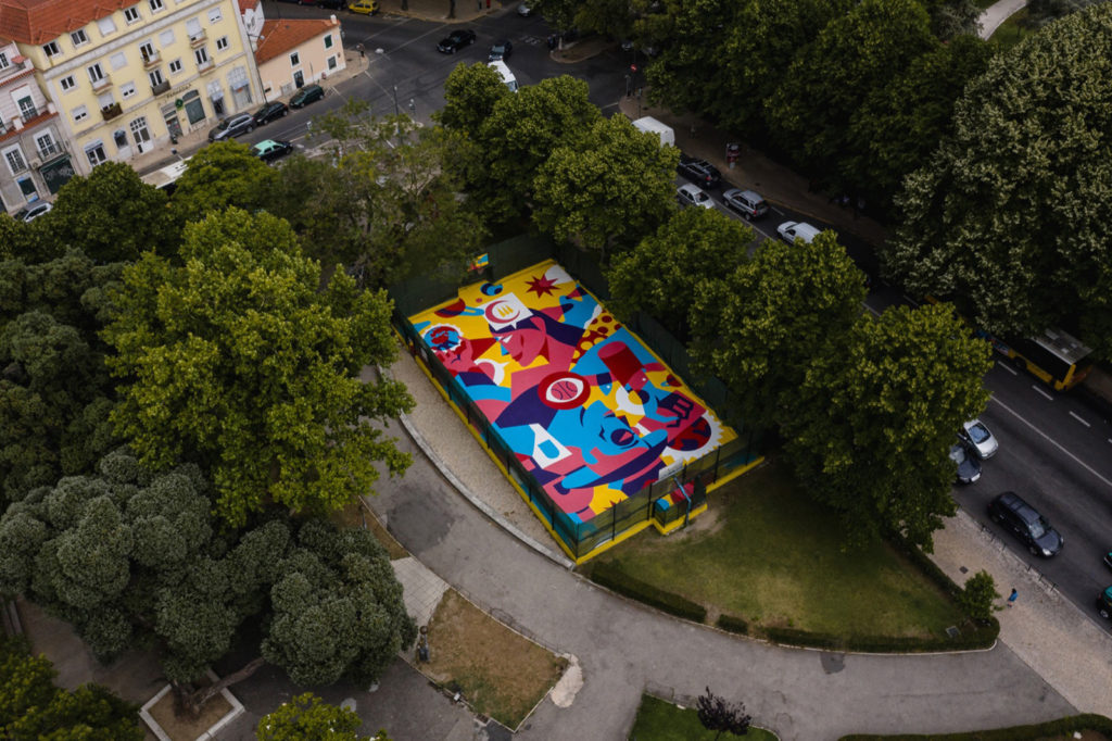 AkaCorleone’s basketball court is found in Lisbon’s Campo dos Mártires da Pátria, and was created as part of the Underdogs Public Art Programme in partnership with the Urban Art Gallery of the Lisbon Municipal Council.