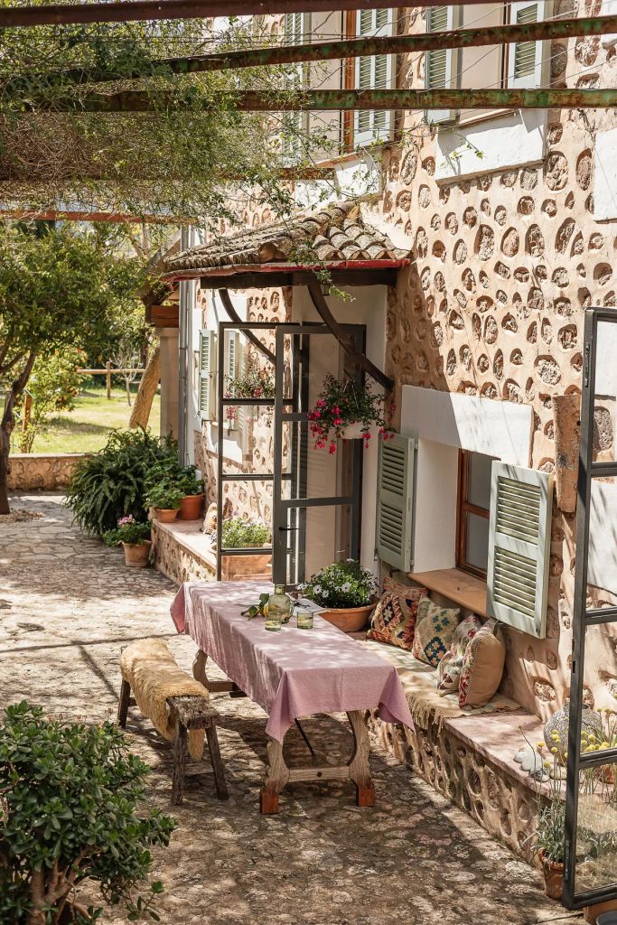 A low-slung Mallorcan finca opens toward the Tramuntana mountains