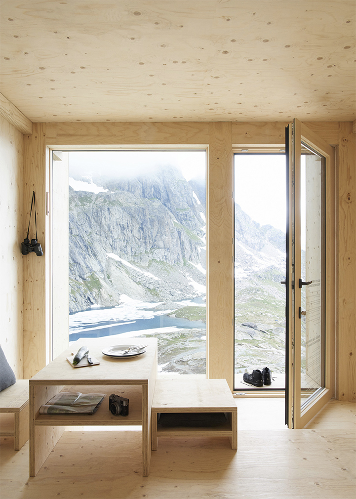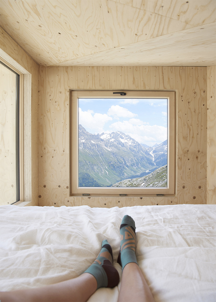 Zurich running brand On designed the cabin, as an ode to the Engadin landscape the company’s founders often hike through together. As such, the focus is on the views rather than any creature comforts.