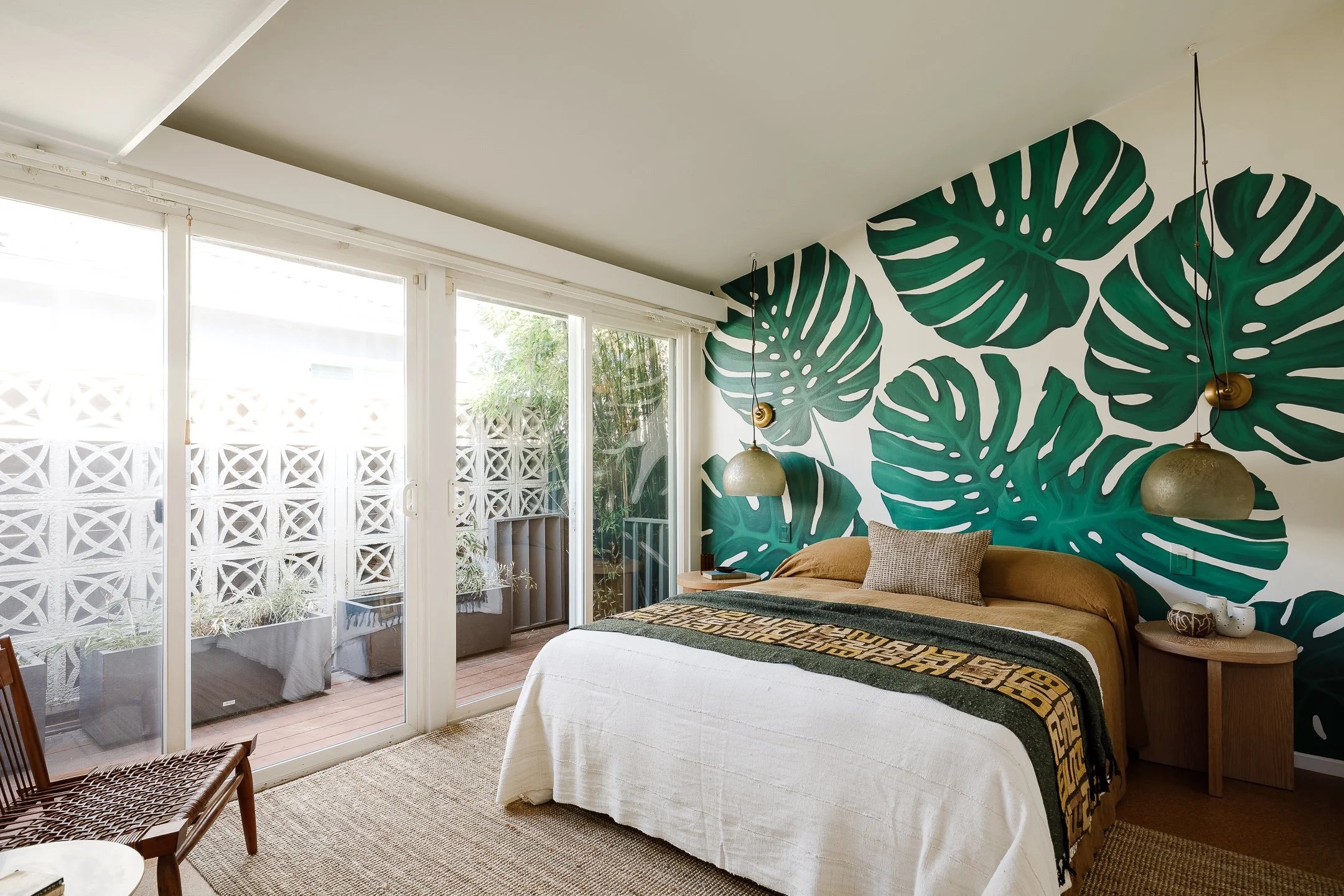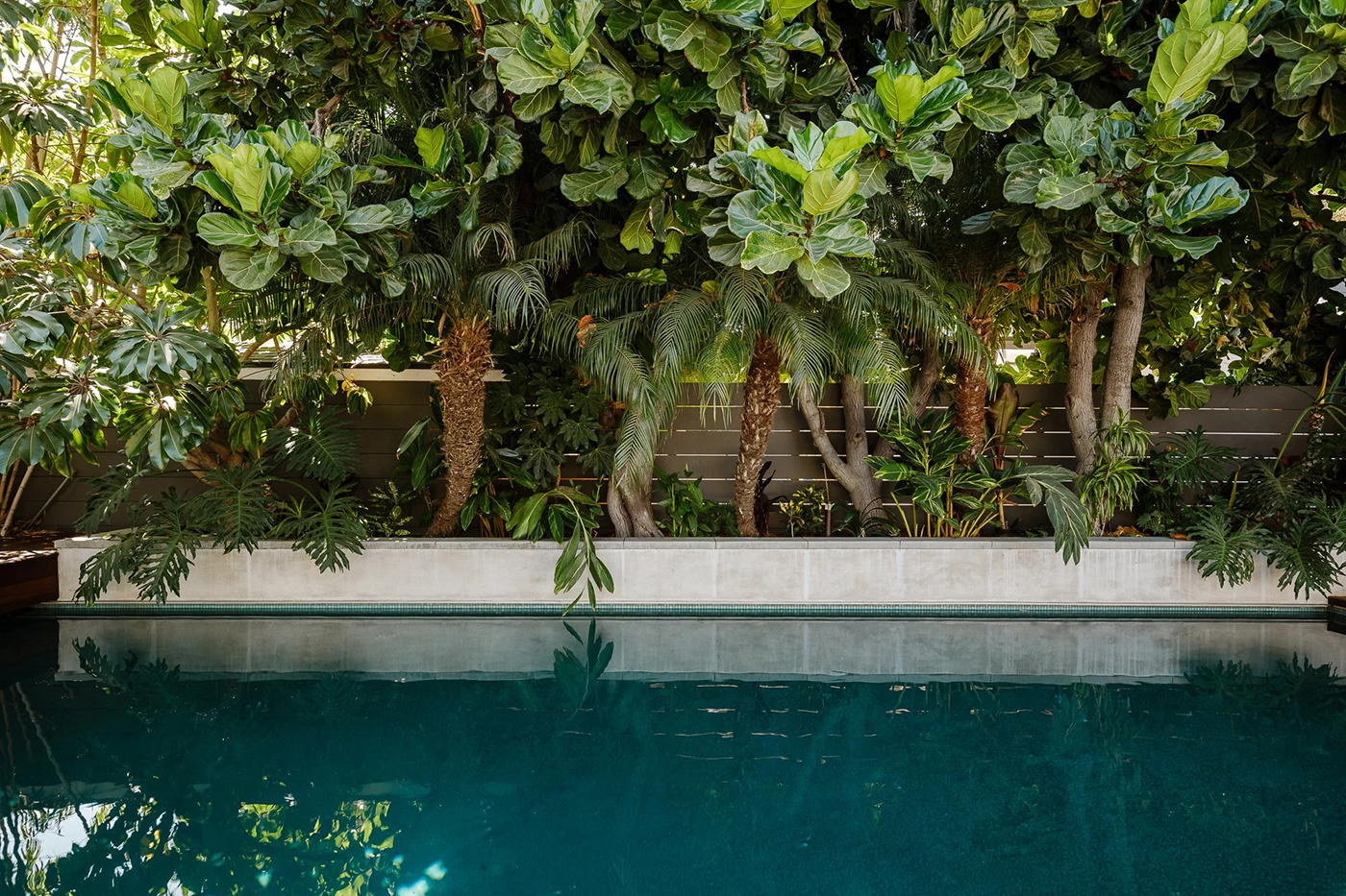 Elsewhere, Tay’s knack for nuanced colour comes through in the creative tile and brickwork. His Roman brick fireplace remains in the open-plan living room, and his zippy tiled backsplash wraps around new cabinetry in the adjacent kitchen. South-facing windows look onto the 6,500 sqft lot with its patio, pool and mature bamboo and fig trees. There are three bedrooms and three bathrooms in all.