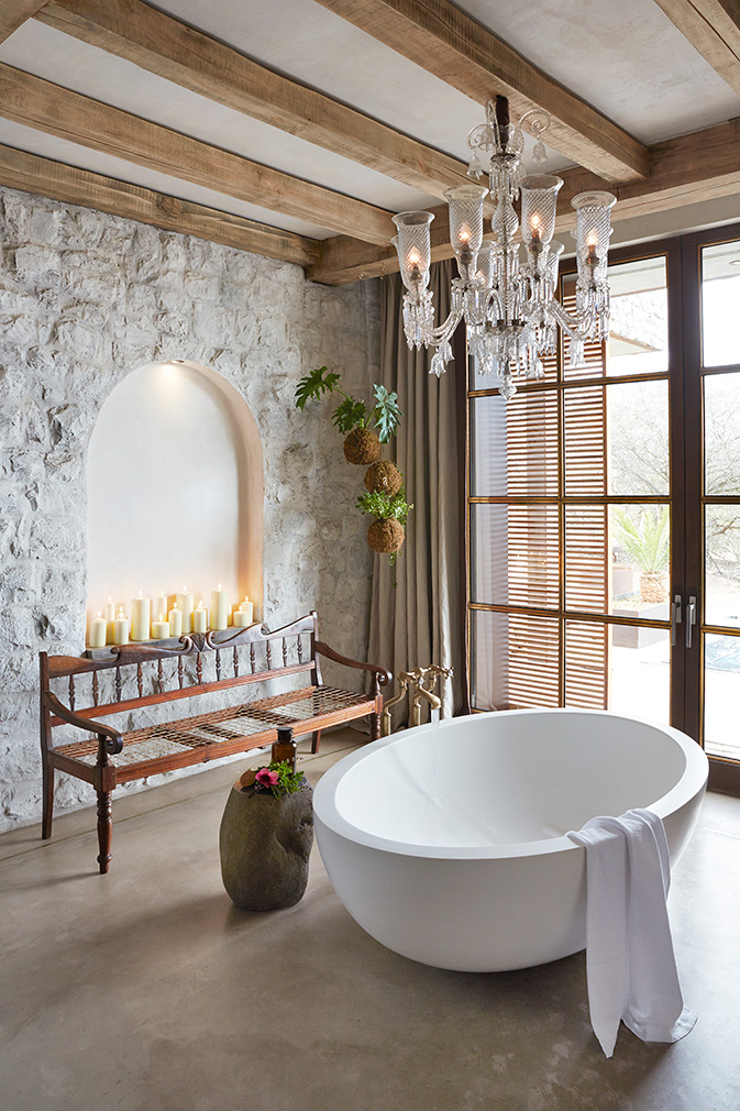 Kubili House was born of its owner’s love of architecture and conservation and the designer’s eye for design. Their mutual appreciation for details that pique the senses comes alive inside the private villa in South Africa’s Kruger Park. An eclectic and dramatic stone structure houses an interior experience that’s both global and bespoke.