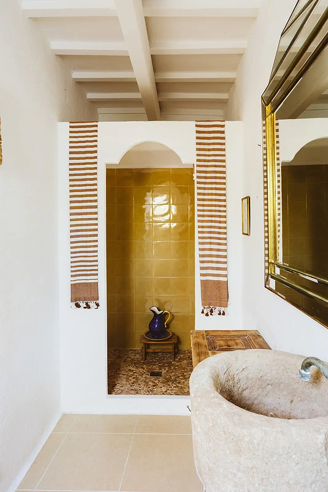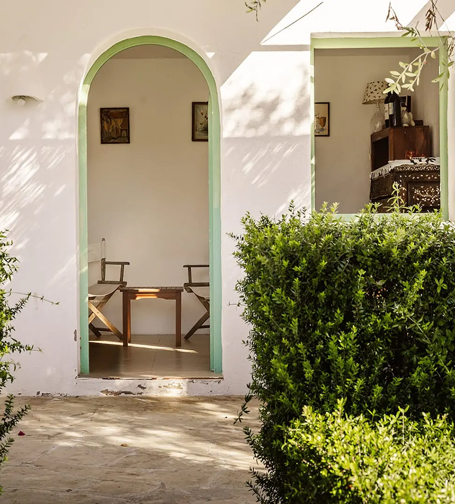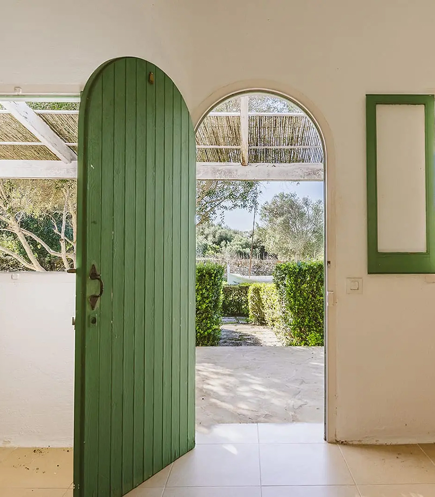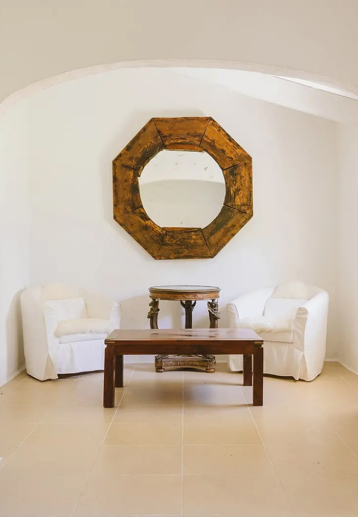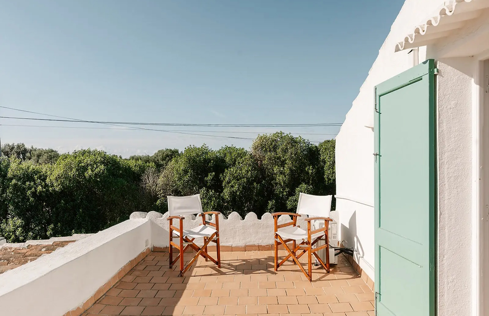 Two casitas in the mature gardens broaden the property’s potential. Each one is self-contained — with a living room, kitchen, bathroom and double bedroom — offering privacy for guests or allowing work and home life to run in parallel. Garden pathways weave through aromatic planting toward a traditional stone bread oven, a tactile detail that anchors the ensemble to Menorcan outdoor culture.