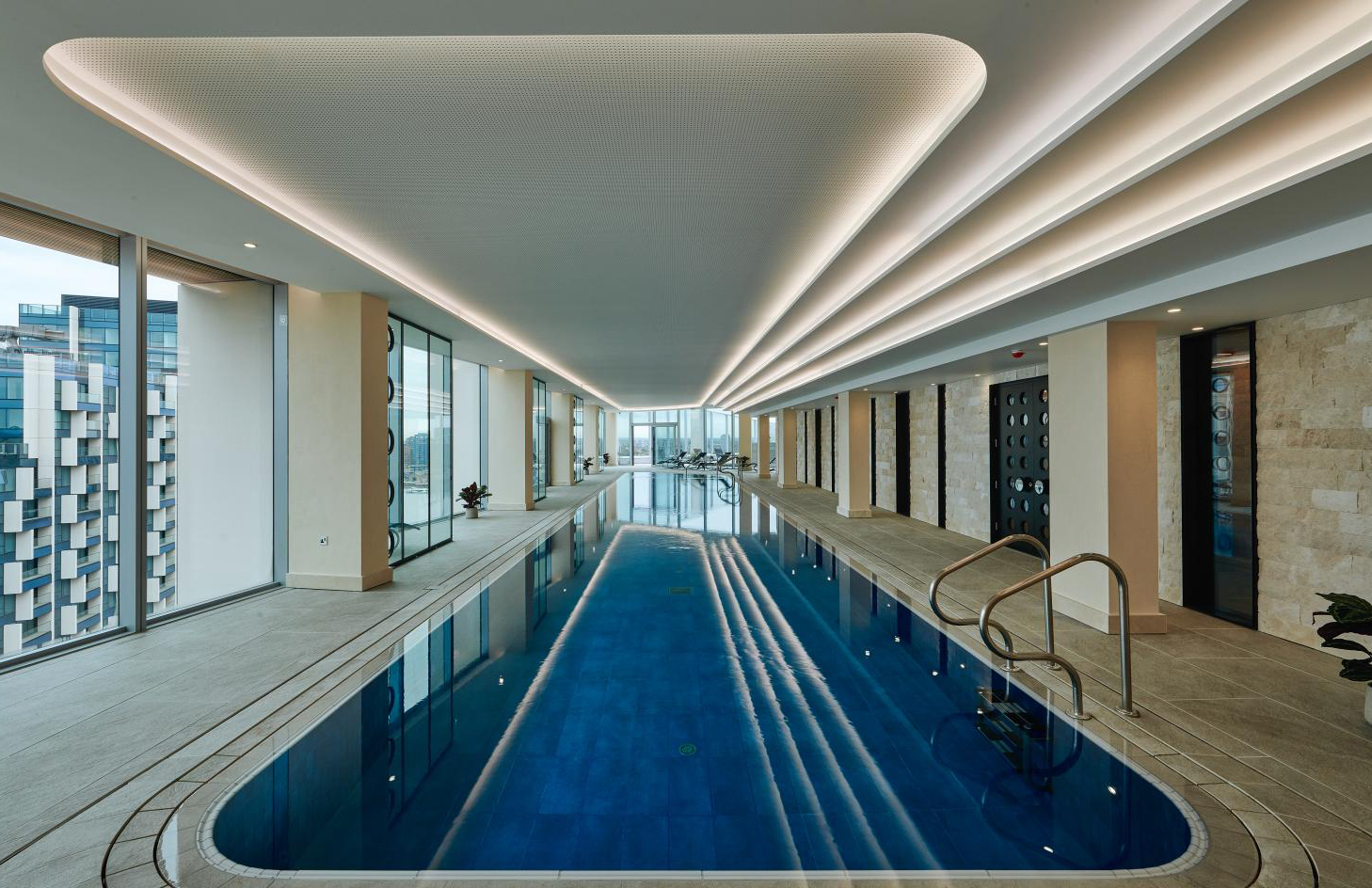 Renew sits atop No 2 Upper Riverside, which is the second of five towers at Greenwich Peninsula with Tom Dixon-designed lofts. Amenities include a sleek swimming pool, steam room, exercise terrace and two state-of-the-art gyms with dramatic skyline backdrops.