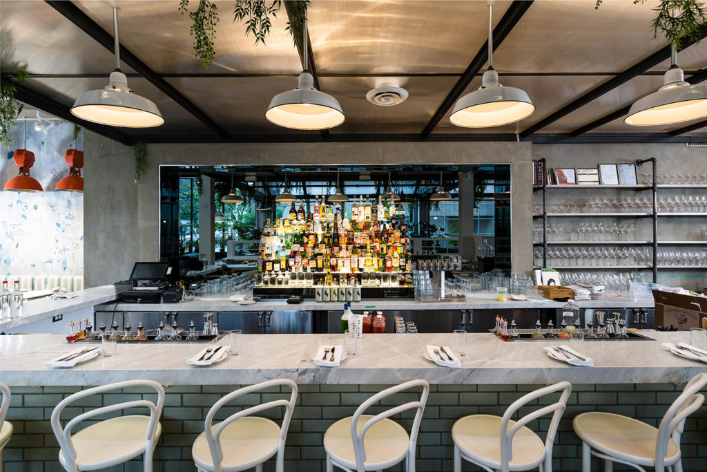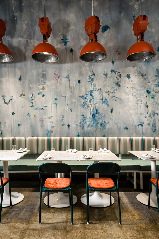 The studio – comprising design duo Brenda Bent and Karen Gable – took inspiration from ruin porn, particularly buildings that have been gradually taken over by nature, to craft the eatery’s interiors.