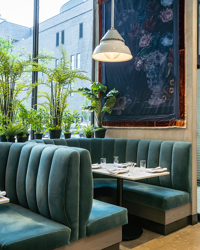 Bent Gable Design has turned a mouldering Toronto industrial building into an oasis of greenery for vegan restaurant Rosalinda.