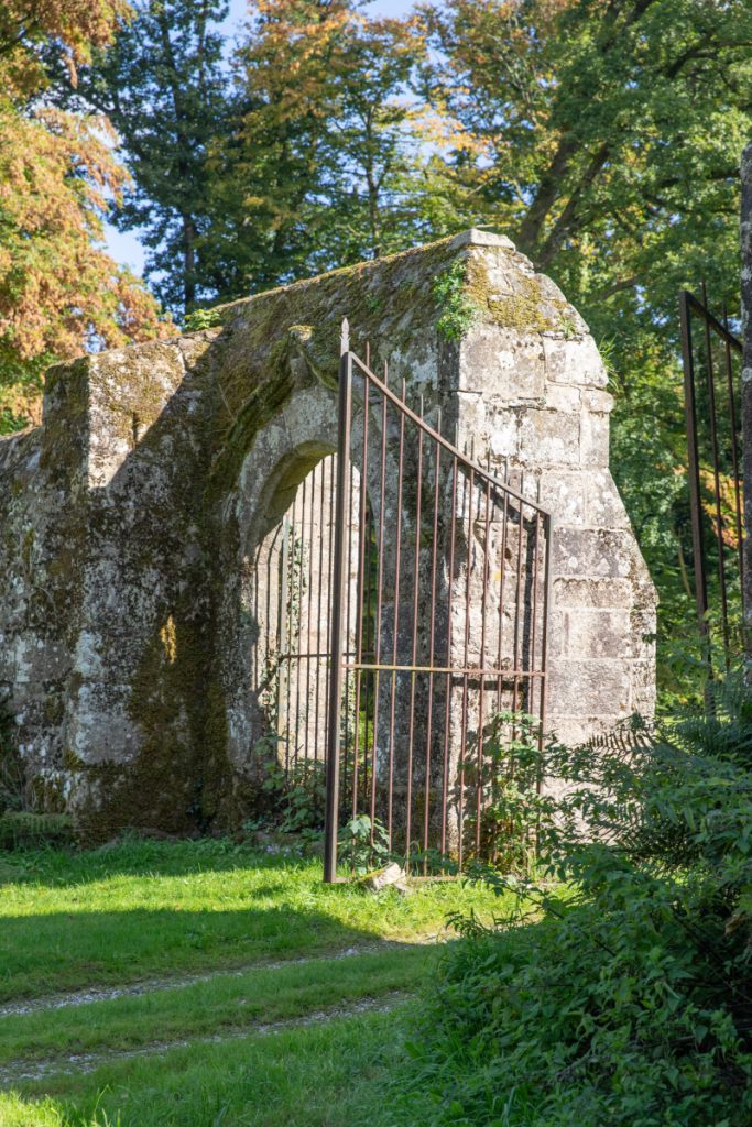 Several stone outbuildings face the main house, including a bakehouse, barns and workshops with slate roofs. The grounds open to sweeping lawns and mature chestnut, oak and willow trees, enclosing the manor in calm seclusion.