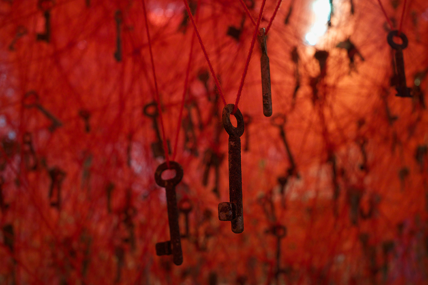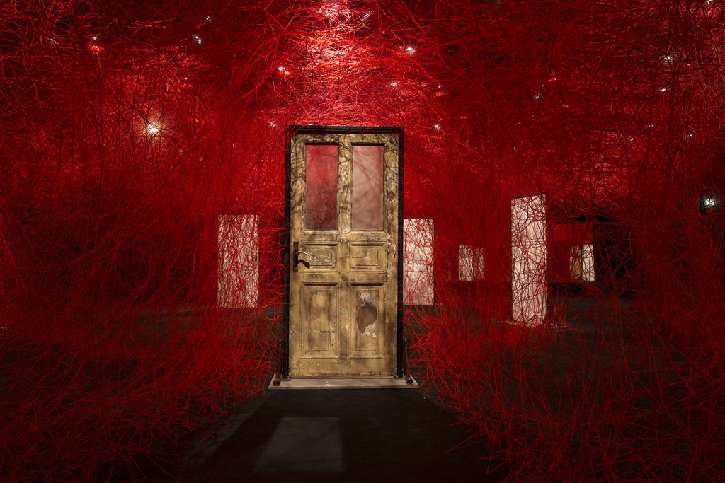 Chiharu Shiota, The Locked Room, 2016, Installation, KAAT Kanagawa Arts Theatre, Yokohama, Japan. Photo by Masanobu Nishino and courtesy of the artist © DACS, London, 2025 and Chiharu Shiota.