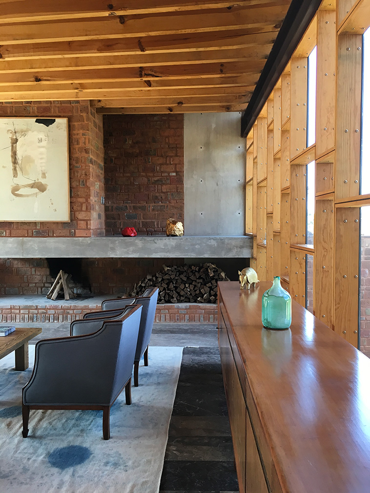 The holiday home has five bedrooms complete with huge open brick fireplaces. Windows meanwhile feature geometric patterning – a riposte to the intricate brickwork of the Mexican villa.