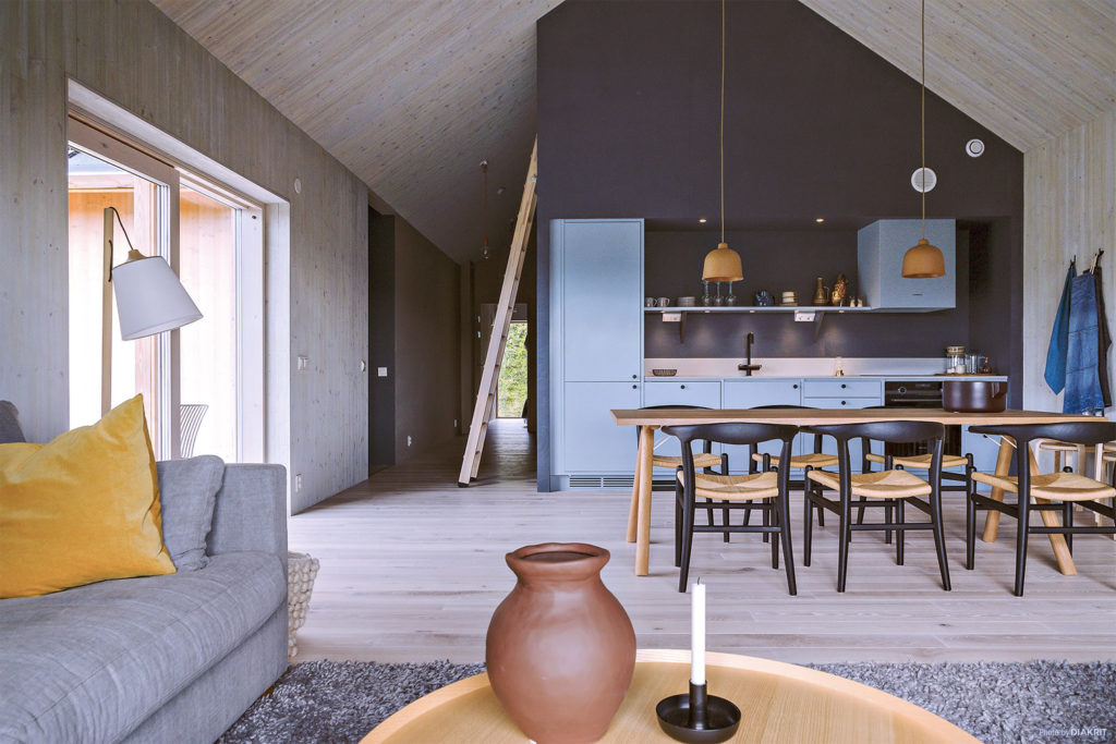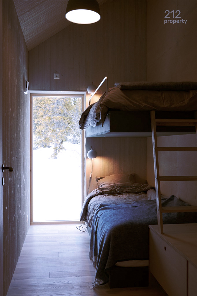 Developer 212 Property built the four-bedroom chalet – on the market for 6.35m KR via Maklarhuset – in Vemdalsskalet last year. It offers a stripped-back take on the alpine aesthetic: trusses and knotted pine have been ditched in favour of clean lines, pitched ceilings and waxed birch plywood walls.